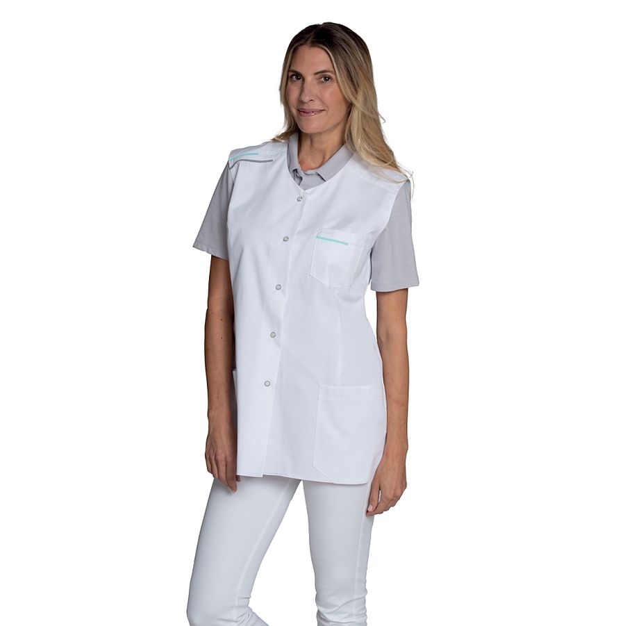 Der ärmellose Damenkasack Modell 04/2147 von Leiber vereint Funktionalität und Stil und ist speziell für den Einsatz in medizinischen und pflegerischen Berufen konzipiert. Das hochwertige Material ist für die Industriewäsche geeignet und behält auch nach häufigem Waschen Form und Farbe bei, was den Kasack besonders langlebig und strapazierfähig macht. Eine durchdachte Druckknopfleiste erleichtert das schnelle An- und Ausziehen, ideal für den hektischen Arbeitsalltag. Die zwei schräg angeordneten Seitentaschen und die Brusttasche bieten ausreichend Platz für alle notwendigen Utensilien, die schnell zur Hand sein müssen. Eine farbige Paspelierung an Schulter und Brusttasche setzt stilvolle Akzente und hebt den Kasack von herkömmlicher Arbeitskleidung ab. Für zusätzlichen Komfort sorgen die praktischen Seitenschlitze, die eine optimale Bewegungsfreiheit gewährleisten. Der abgerundete Saum verbessert nicht nur die Passform, sondern bietet auch zusätzliche Abdeckung und verleiht dem Kasack eine ansprechende Optik. Die Kombination aus stilvollem Design und praktischer Funktionalität macht den Leiber Damen Kasack zur idealen Wahl für Fachkräfte im Gesundheitswesen, die großen Wert auf eine professionelle Ausstrahlung und gleichzeitig auf Komfort und Praktikabilität im Arbeitsalltag legen.