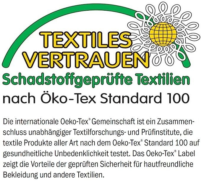 - Zertifiziert nach Öko-Tex Standart 100 für schadstoffgeprüfte Textilien