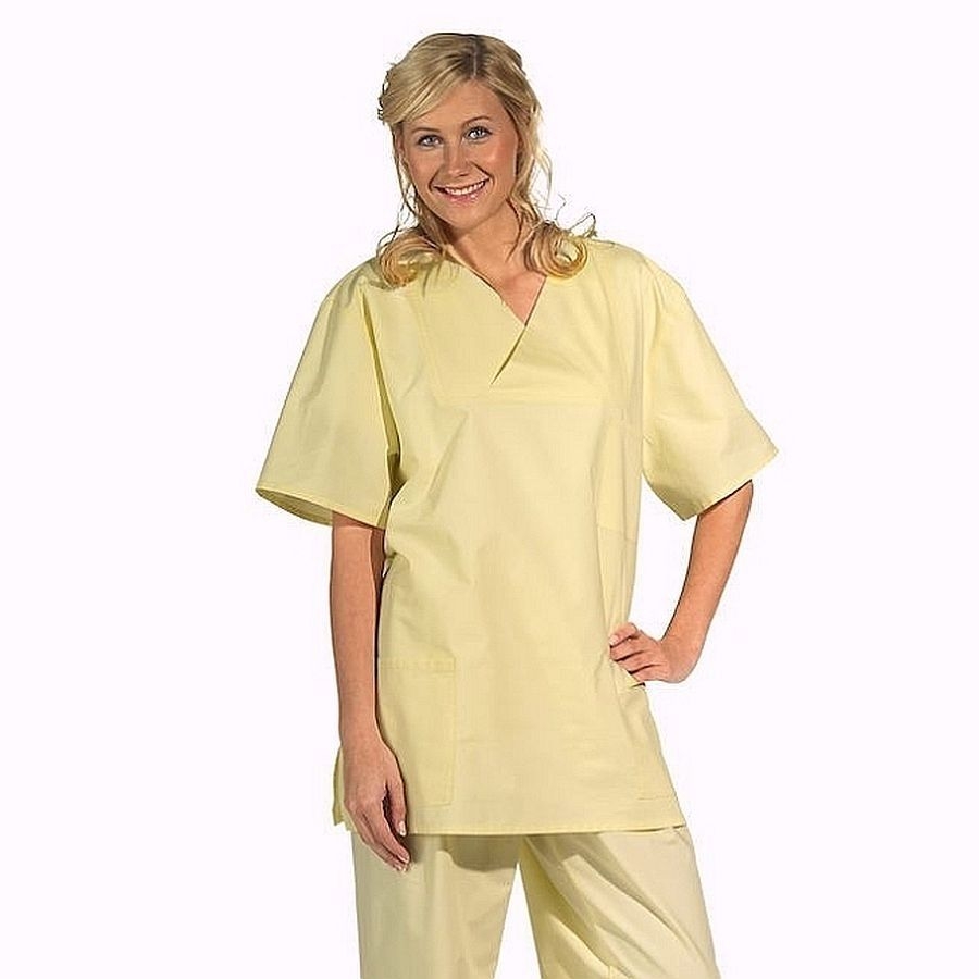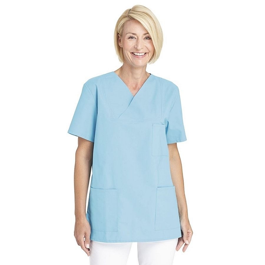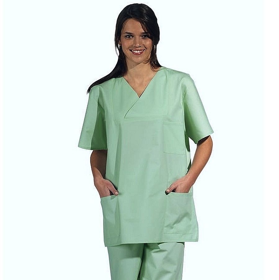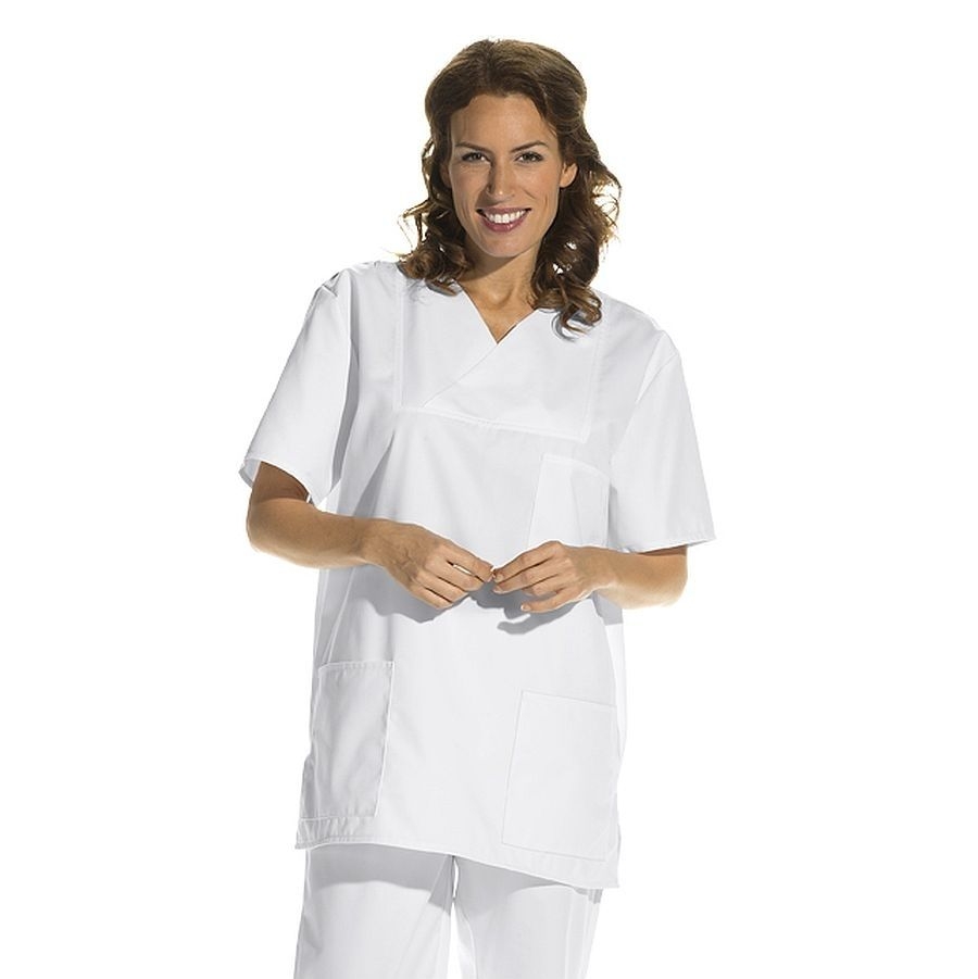 Klassischer Leiber OP Kasack 08/769 für Damen und Herren mit V-Ausschnitt und bequemer Passform. Dieser unisex Kasack ist aus einem klassischen Mischgewebe gefertigt und ist somit robust, langlebig und darüber hinaus für industrielle Waschverfahren geeignet.