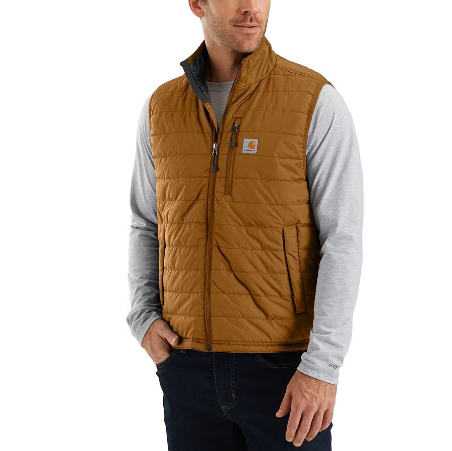 Die Carhartt Gilliam Weste (Artikelnummer 102286) ist eine vielseitige, leichte und isolierte Herren‑Weste aus dem Hause Carhartt, die funktionale Arbeits‑ und Freizeitbekleidung ideal vereint. Diese hochwertige Weste wurde speziell für kühlere Tage entwickelt – sie hält den Oberkörper angenehm warm, ohne dabei aufzutragen oder die Bewegungsfreiheit einzuschränken. Das robuste 100 % Cordura® Nylon‑Obermaterial mit langlebiger Rain Defender™‑Ausrüstung sorgt dafür, dass leichte Regenschauer und Spritzwasser einfach abperlen. Gleichzeitig schützt die Wind Fighter™‑Technologie vor unangenehmem Wind.