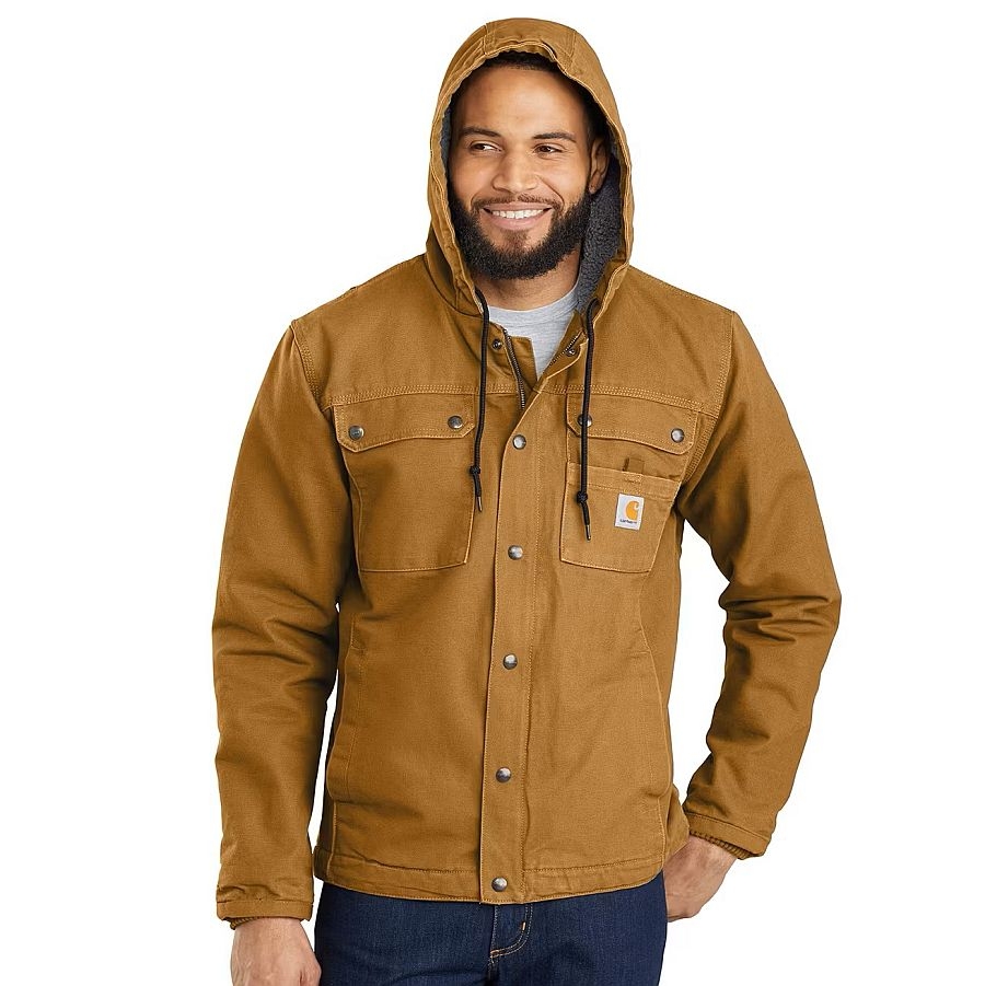 Carhartt Bartlett Jacke aus gewaschenem Duck-Material – Artikelnummer 103826. Die Carhartt Bartlett Jacke aus gewaschenem Duck-Material (Art.-Nr. 103826) ist die perfekte Wahl für alle, die bei Wind und Wetter auf zuverlässige, strapazierfähige Workwear setzen. Sie besteht aus robustem, gewaschenem Baumwoll-Duck (100 % Baumwolle, 407 g/m²) – einem Material, das für seine extreme Belastbarkeit bekannt ist, aber dank Vorwäsche angenehm weich und bequem zu tragen ist.