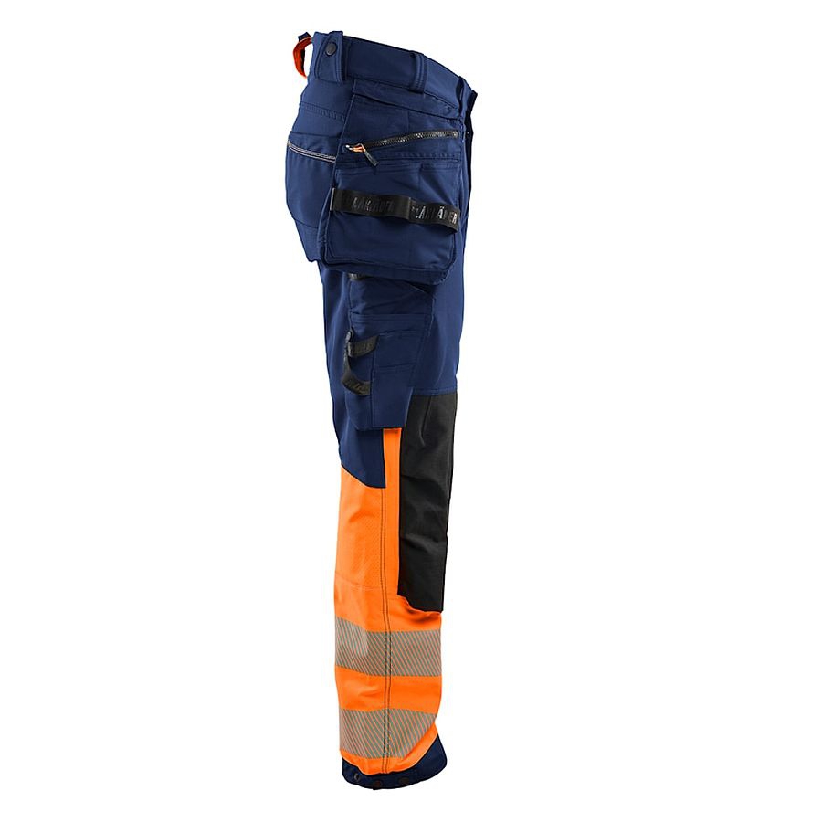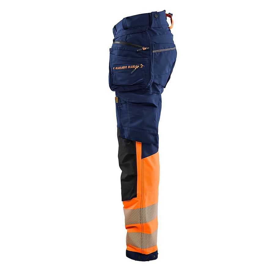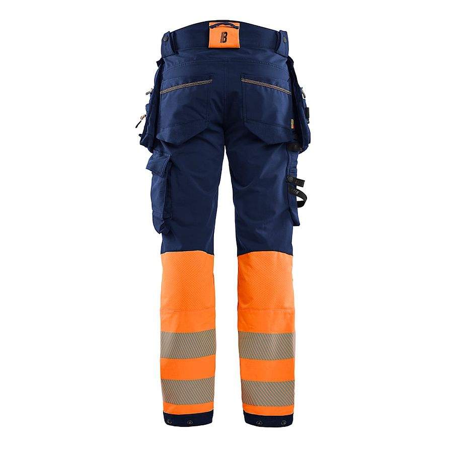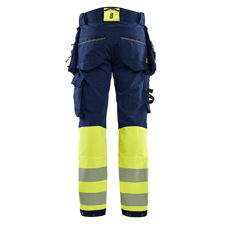 Die Hose ist schlanker geschnitten, hat einen attraktiven Retro-Look und ist sowohl in Blau mit weißen Kontrastnähten als auch in Schwarz mit grauen Nähten erhältlich. Für einen extra leichten und angenehmen Tragekomfort sorgen Einsätze aus 4-Wege-Stretch Stoff am Gesäß. Mit Zollstocktasche, Holstertaschen, leicht zugänglicher Handytasche und CORDURA® verstärkten Gesäßtaschen. Die Hose hat auch CORDURA®-Stretch verstärkte Kniepolstertaschen für größtmöglichen Komfort. Zertifiziert nach EN ISO 20471 Standard, Klasse 1