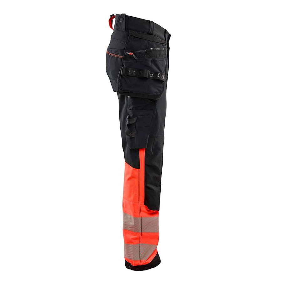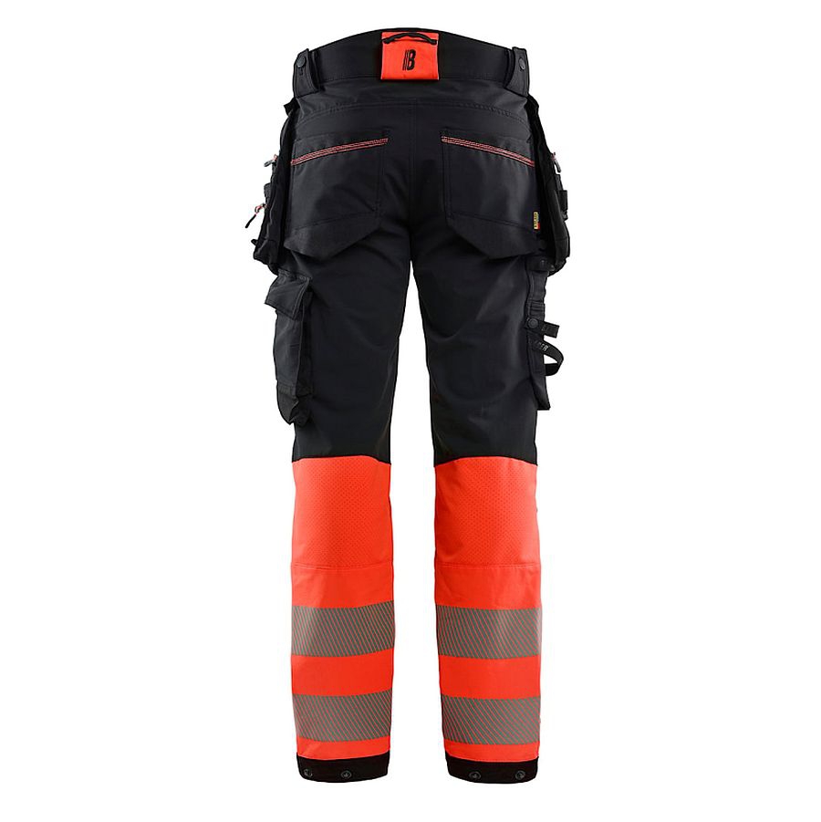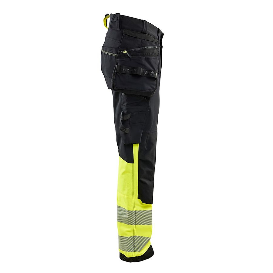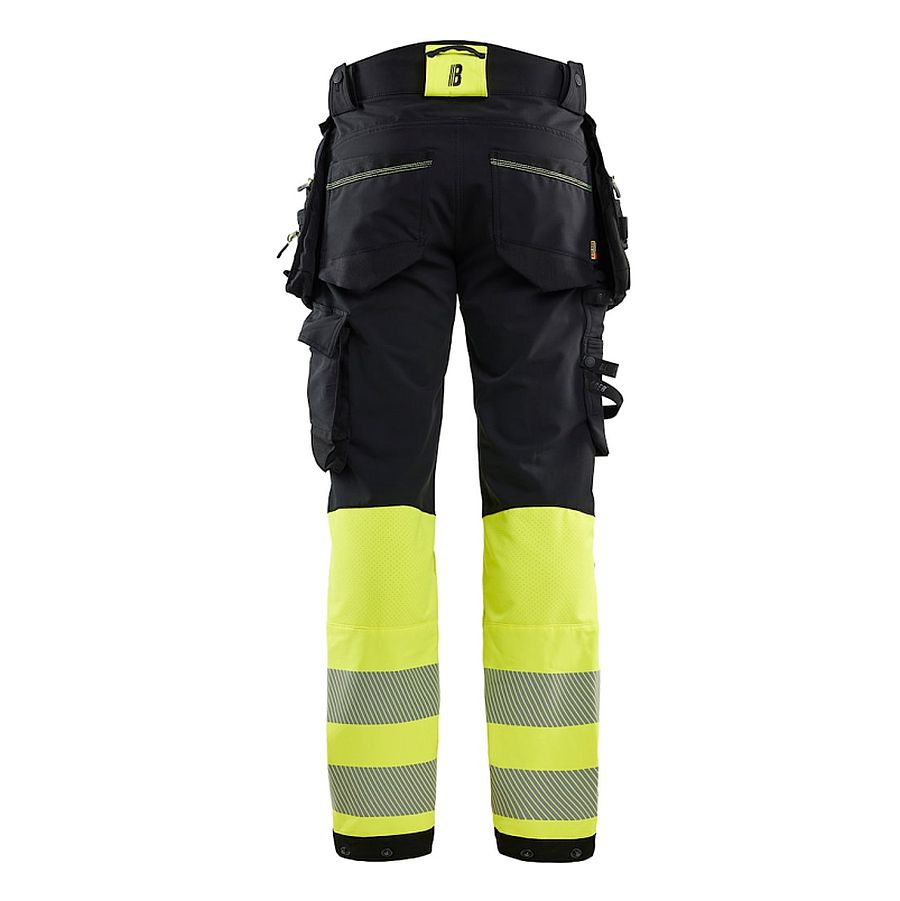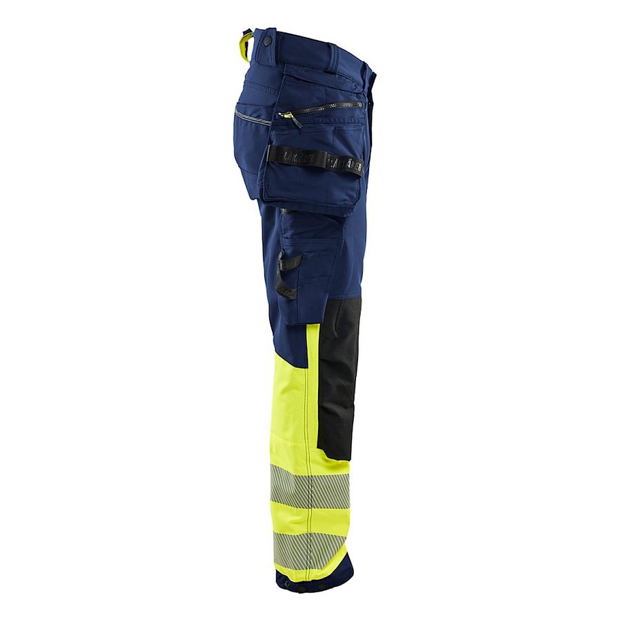 Die Hose ist schlanker geschnitten, hat einen attraktiven Retro-Look und ist sowohl in Blau mit weißen Kontrastnähten als auch in Schwarz mit grauen Nähten erhältlich. Für einen extra leichten und angenehmen Tragekomfort sorgen Einsätze aus 4-Wege-Stretch Stoff am Gesäß. Mit Zollstocktasche, Holstertaschen, leicht zugänglicher Handytasche und CORDURA® verstärkten Gesäßtaschen. Die Hose hat auch CORDURA®-Stretch verstärkte Kniepolstertaschen für größtmöglichen Komfort. Zertifiziert nach EN ISO 20471 Standard, Klasse 1