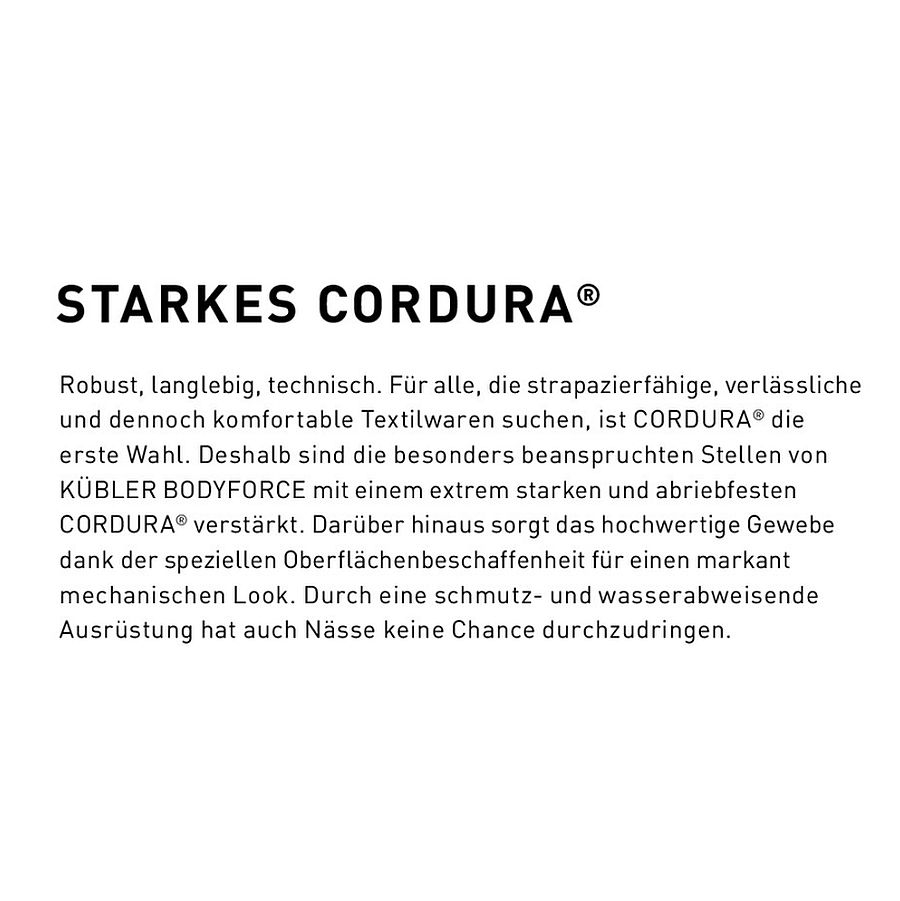 - Gewebeverstärkung: 100% Polyamid Cordura®