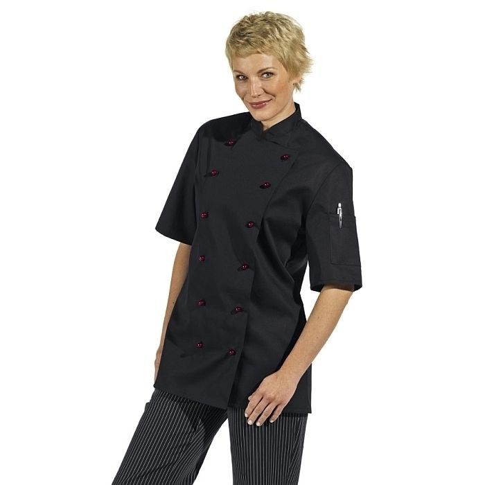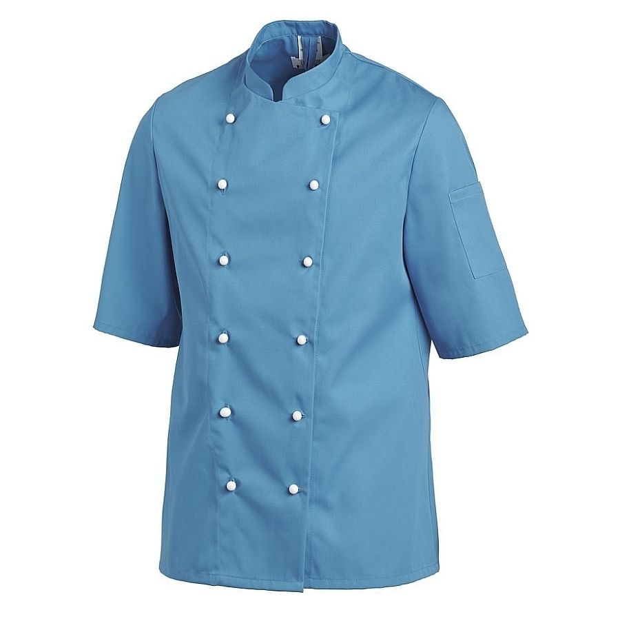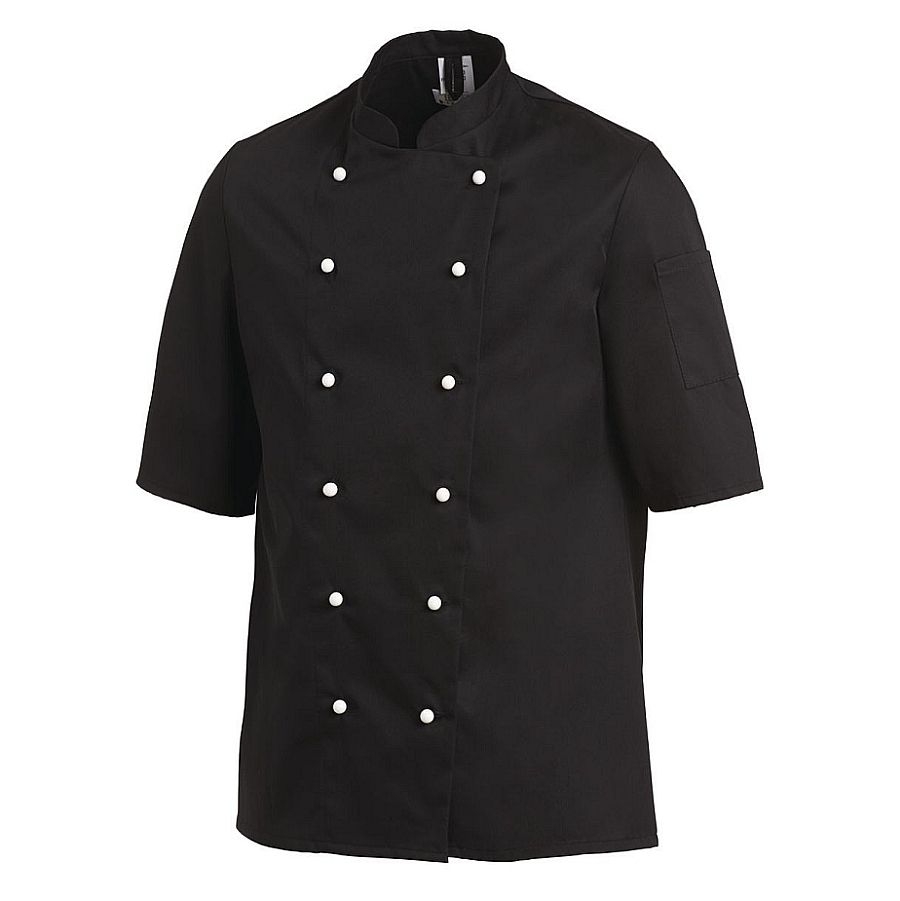 Klassische Leiber halbarm Kochjacke aus extrem robusten und industriewäsche-geeignetem Mischgewebe. Die Kochjacke 12/1094 ist für die Verwendung von Kugelknöpfen mit 6-Loch-Knopfreihen vorbereitet und besitzt eine praktische Stifttasche auf dem linken Oberarm.
