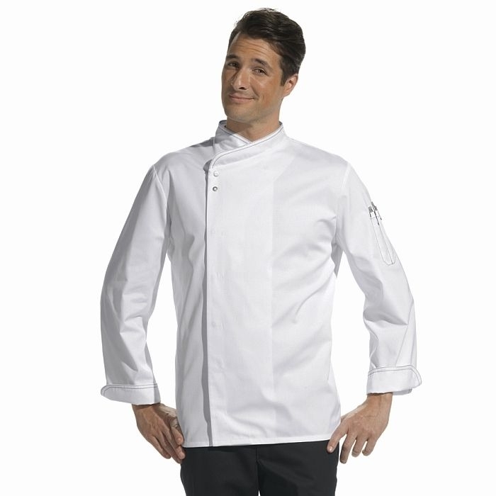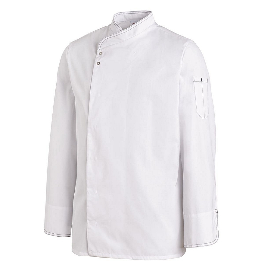 Leichte Leiber Kochjacke aus einem luftigen Mischgewebe. Durch die Verwendung eines sehr leichten und luftigen Materials garantiert die Leiber Kochjacke 12/2444 einen hervorragenden Tragekomfort. Dank der kontrastfarbenen Absteppungen erhält die Leiber Kochjacke ein dezentes, edles Design.