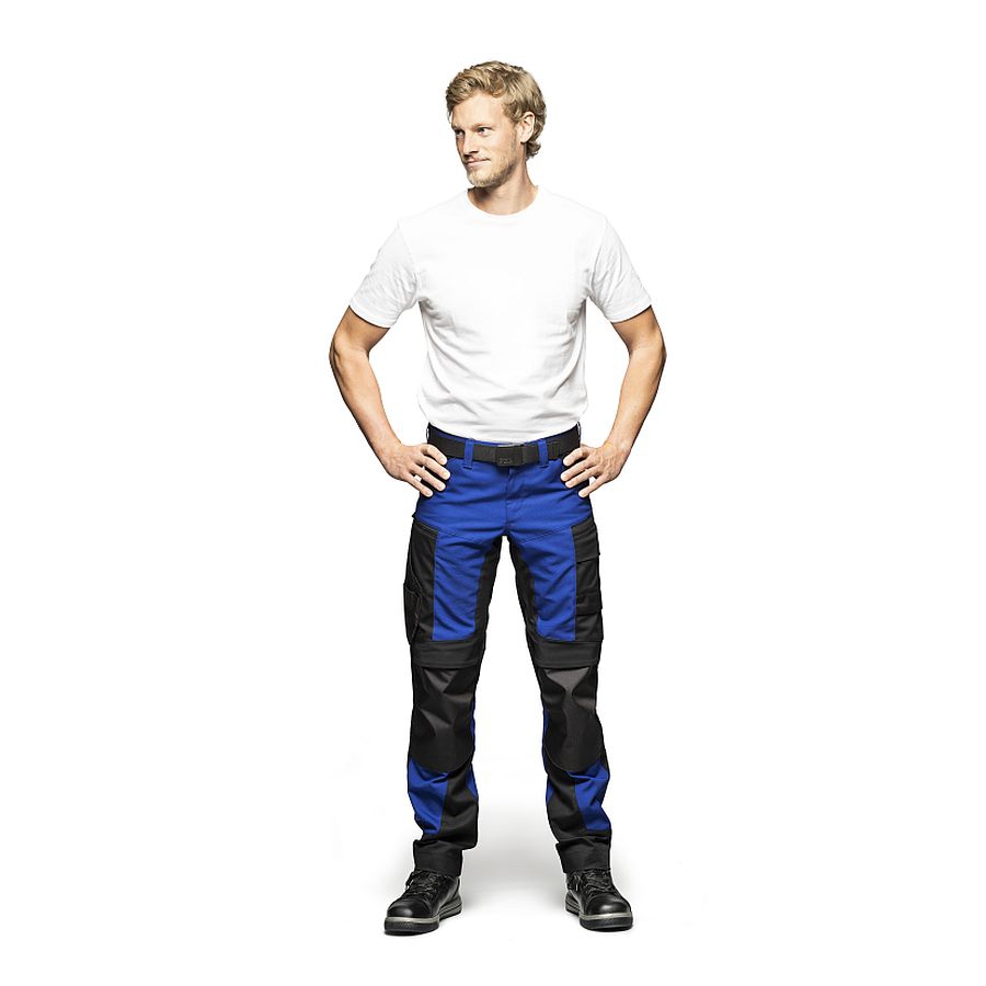Die neue FHB Arbeitshose LEO kombiniert ein extrem robustes Canvas-Gewebe mit einem hoch elastischen Stretchgewebe. Das stabile Canvas-Gewebe mit 320 g/m² wurde an den belasteten Stellen platziert und garantiert eine hohe Scheuerbeständigkeit. Das neuartige Stretchgewebe wird an den Bewegungszonen eingesetzt und sichert Ihnen maximale Bewegungsfreiheit in jeder Position. Im Bundbereich kommen zusätzlich 3D-Frinlock-Stretchkeile zum Einsatz, die den Komfort der Arbeitshose LEO nochmals verbessern. Knie- und Taschenbereiche wurden zusätzlich mit Cordura® verstärkt. Die Arbeitshose LEO von FHB setzt hinsichtlich Ergonomie und Passform neue Maßstäbe und kombiniert auf einzigartige Weise maximale Bewegungsfreiheit mit intelligenten Taschenlösungen und einer hohen Robustheit.