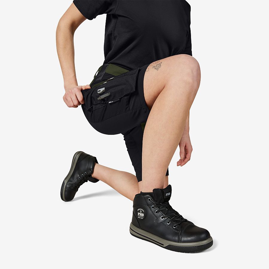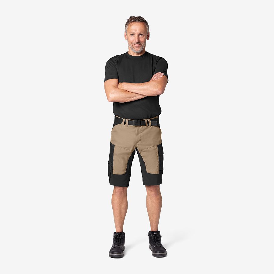 Die neue FHB Short KIM kombiniert das robusten FHB-Vollzwirn-Gewebe mit einer extremen Leichtigkeit. Stretchgewebe wird an den Bewegungszonen eingesetzt und sichert Ihnen maximale Bewegungsfreiheit in jeder Position. Elastische 3D-Frinlock-Einsätze verbessern den Komfort der Arbeitsshort KIM nochmals. Gesäß- und Schrittbereich wurden zusätzlich mit Cordura® verstärkt. Die Short KIM von FHB setzt hinsichtlich Ergonomie und Passform neue Maßstäbe und kombiniert auf einzigartige Weise maximale Bewegungsfreiheit mit intelligenten Taschenlösungen und einer hohen Robustheit.