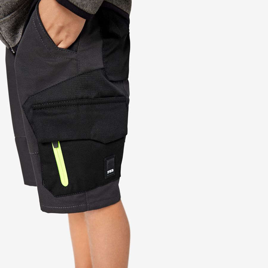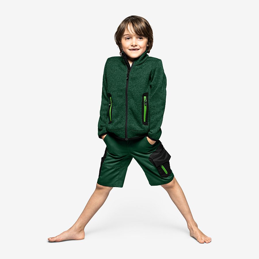 Die Kinder Bermuda Charly von FHB mit der Artikelnummer 125550 ist die perfekte Kombination aus Komfort, Funktionalität und Qualität. Das besondere Highlight der Bermuda Charly liegt in dem extra für FHB entwickelten Gewebe, das eine optimale Mischung aus Baumwolle und Polyester bietet. Dieses innovative Material gewährleistet nicht nur eine angenehme Haptik, sondern auch eine hohe Strapazierfähigkeit und Langlebigkeit der Hose. Die Bermuda Charly verfügt über eine ergonomisch perfekte Schnittführung, die den jungen Trägern maximale Bewegungsfreiheit gewährt. Die Hose ist mit einem verstellbaren Hosenbund ausgestattet, der eine individuelle Anpassung ermöglicht. Dadurch wächst die Bermuda Charly mit den Kindern mit und gewährleistet stets einen optimalen Sitz. Die Kinder Bermuda Charly verfügt über eine durchdachte Taschenausstattung, die den Anforderungen junger Abenteurer gerecht wird. Rechts befindet sich eine 1 Zollstocktasche und links eine verschließbare Volumentasche - perfekt, um kleine Schätze sicher zu verwahren. Zusätzlich stehen zwei Gesäßtaschen zur Verfügung, die weiteren Stauraum bieten. Die Bermuda Charly ist mit einem innovativen und gebrauchsmustergeschützten FHB-Pattentaschenverschluss ausgestattet. Dieser gewährleistet, dass die Taschen sicher verschlossen bleiben und nichts verloren geht, selbst bei ausgelassenem Spielen.