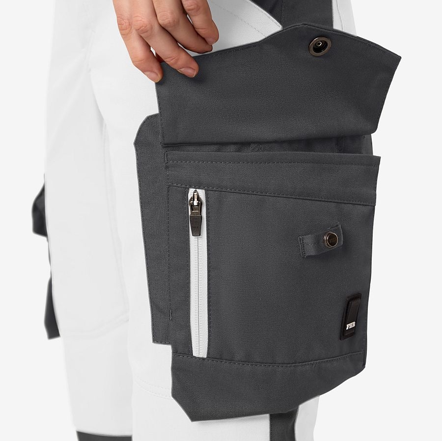 Für Arbeiten in kniender Position bringt die FHB ANNETTE Arbeitshose Damen (125610) einen zertifizierten Knieschutz aus Cordura mit – damit ist der Kniebereich auf hohe Beanspruchung ausgelegt und auf Schutz im Arbeitsalltag ausgelegt. Dazu kommen diverse Volumentaschen auf beiden Seiten, damit Werkzeug, Zollstock, Handy oder Kleinteile schnell griffbereit bleiben. Praktisch: Die neu entwickelte FHB Pattentaschenverschlusslösung sorgt dafür, dass Pattentaschen sicher schließen und im Alltag zuverlässig funktionieren.