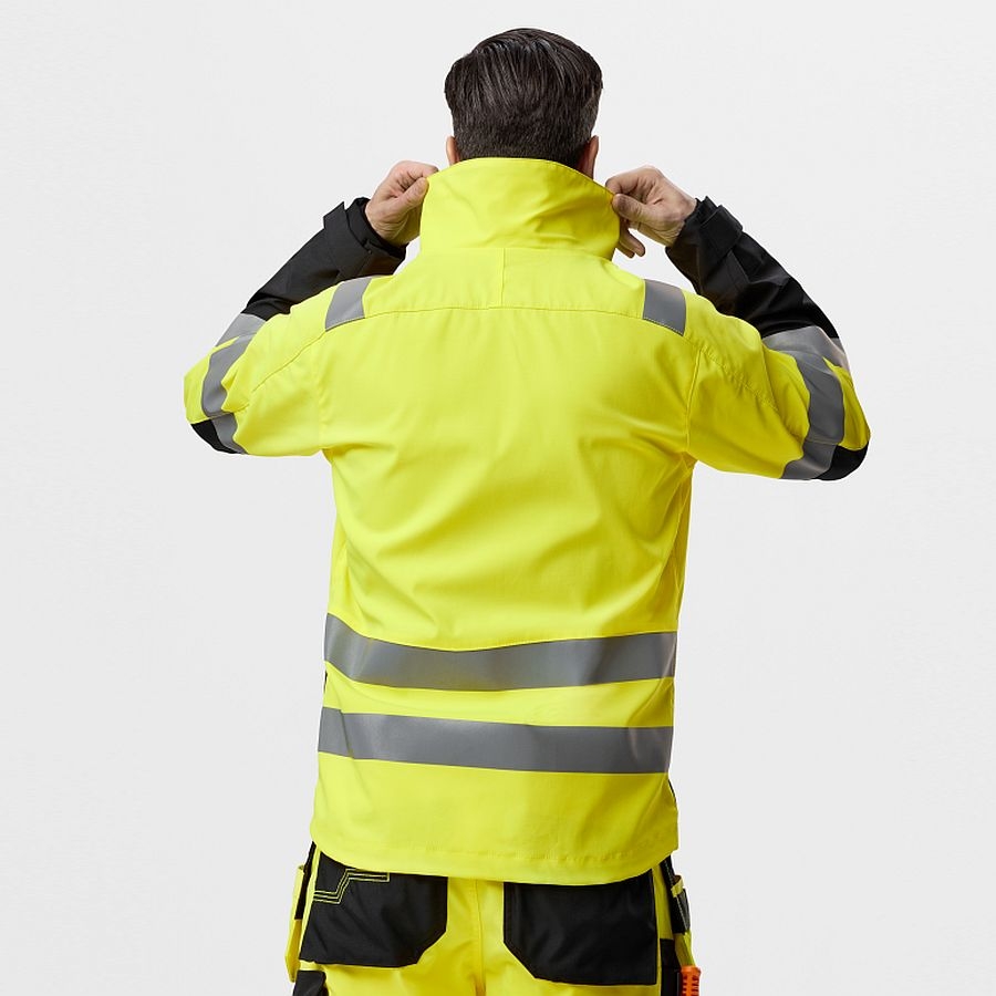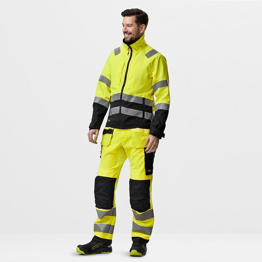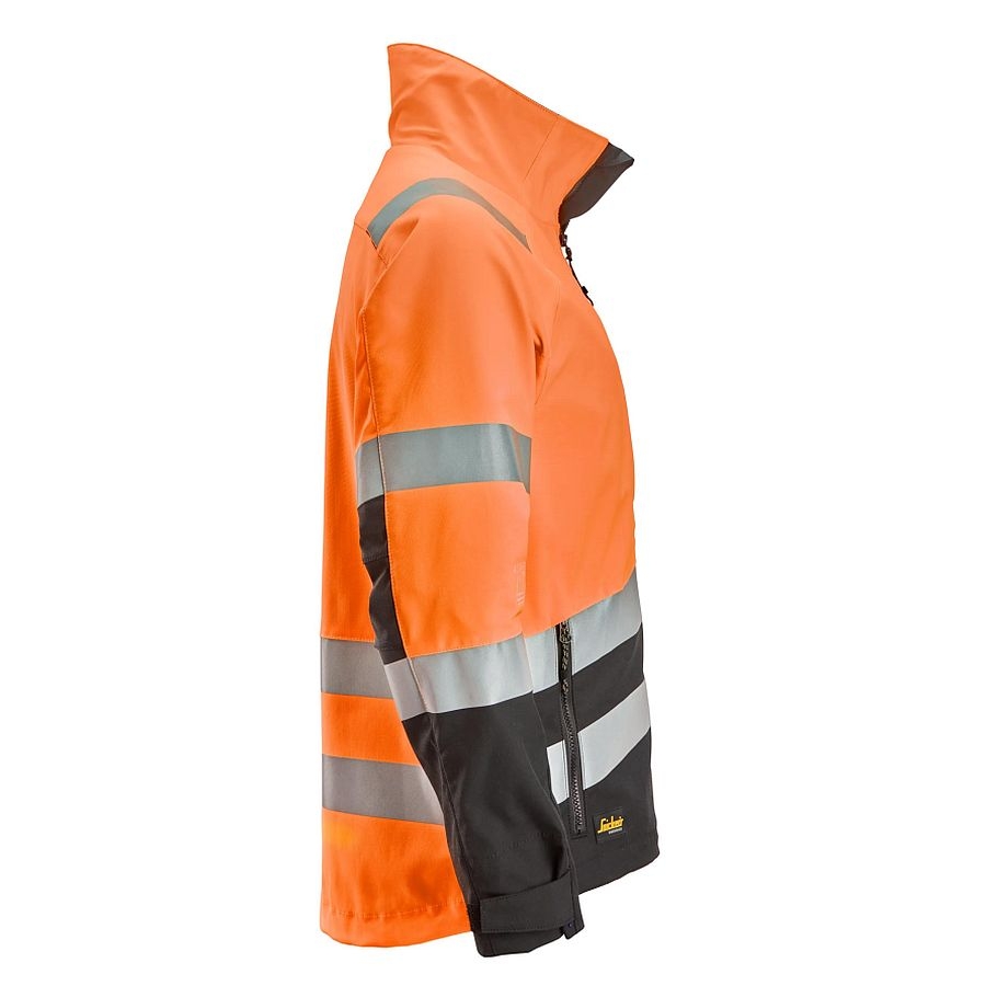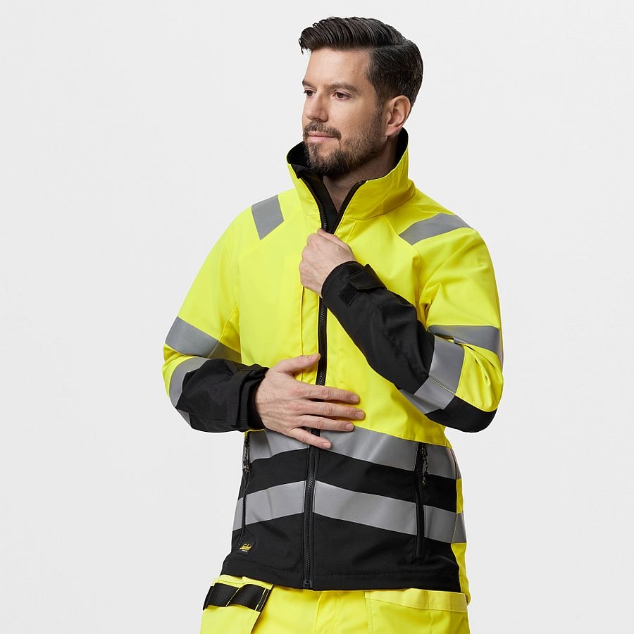 ie Snickers Workwear 1532 High-Vis Jacke ist die perfekte Wahl für anspruchsvolle Arbeiten im Freien bei schlechten Sichtverhältnissen. Diese vielseitige Warnschutzjacke wurde speziell für Profis in den Bereichen Bauwesen, Dachdecken, Transport und Logistik entwickelt. Durch ihre Zertifizierung nach DIN EN ISO 20471 (Klasse 2/3) sowie DIN EN 342 gewährleistet sie zuverlässigen Schutz und hervorragende Sichtbarkeit selbst unter härtesten Bedingungen. Das robuste Obermaterial aus einem hochwertigen Mischgewebe – 54 % recycelter Polyester, 30 % Sorona® Polyester und 16 % Baumwolle (245 g/m²) – macht die Jacke besonders langlebig, während die Innenseite mit einem atmungsaktiven Netzfutter für ein angenehmes Tragegefühl sorgt. Die Heat-Transfer-Reflexstreifen erhöhen die Sichtbarkeit bei Dunkelheit, ohne die Bewegungsfreiheit einzuschränken.