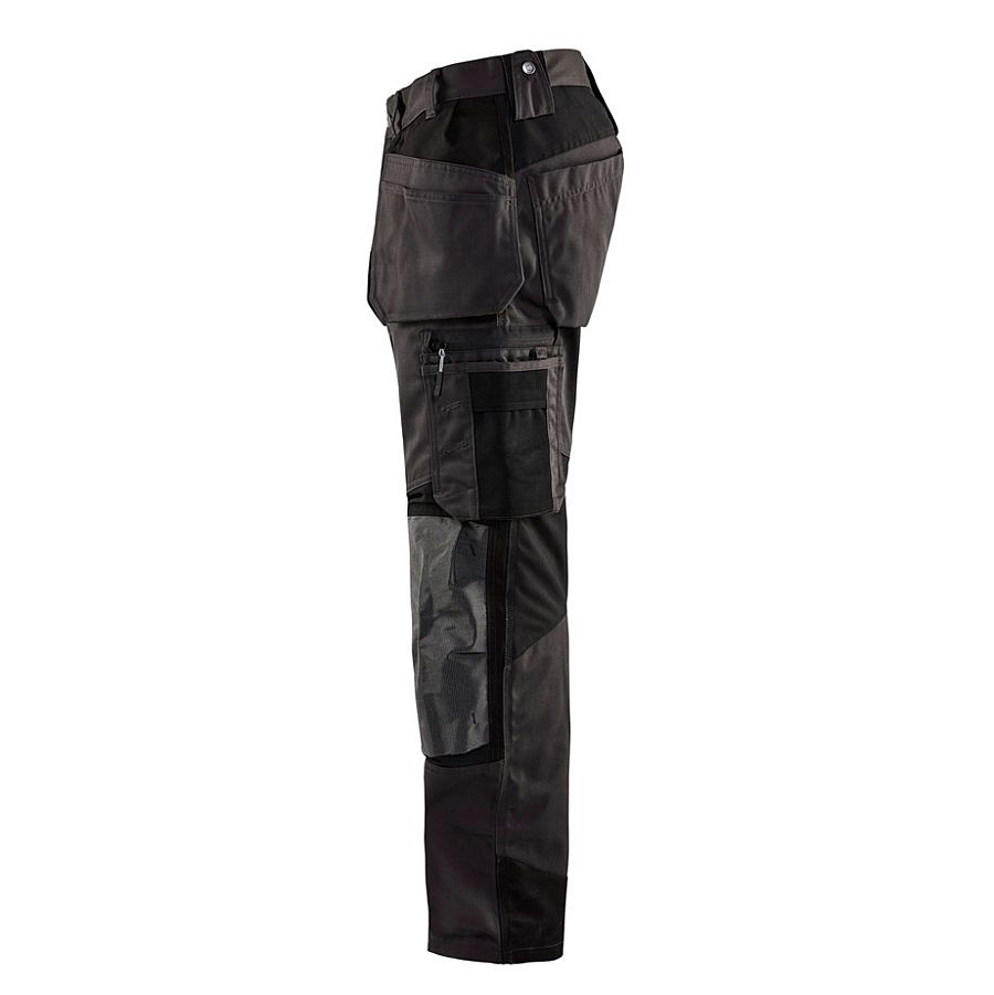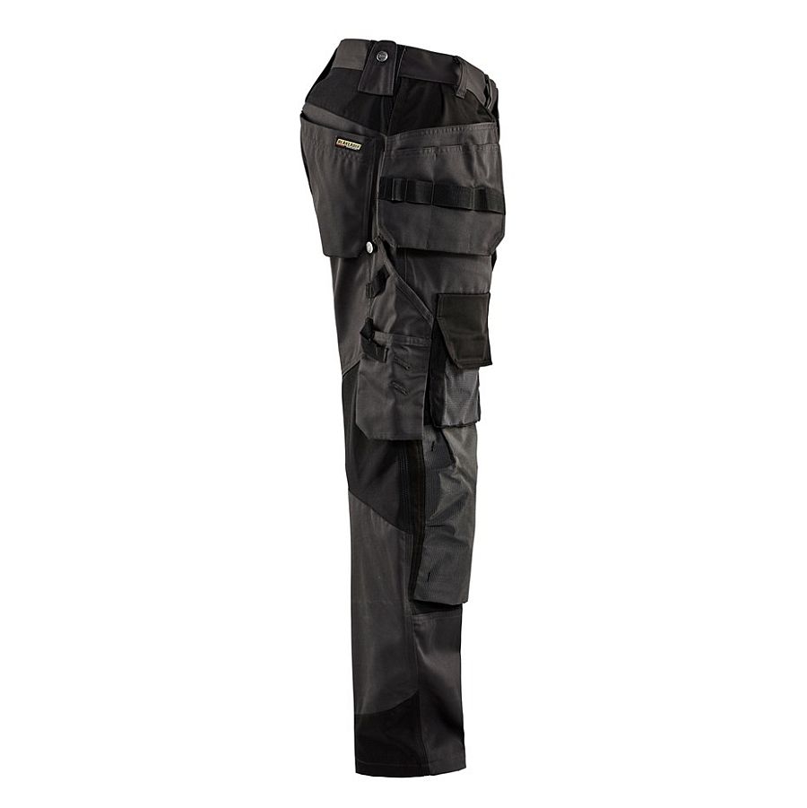Gut aussehende, flexible und robuste Handwerker Bundhose mit sorgfältig entwickelten Details. Die haltbare Hose mit präzise entworfenen Details bietet Bewegungsfreiheit, Funktionalität und Komfort. Das Material ist robust und die Kombination mit Stretch Einsätzen macht die Hose ideal für z.B. Boden- und Fliesenleger, die oft in knienden Positionen arbeiten. Die Hose hat Stretch Einsätze hinten, an den Vordertaschen und an der Rückseite der Knie für bessere Bewegungsfreiheit. Sie hat eine Vielzahl strategisch platzierter funktioneller Taschen wie eine Messertasche aus einem verstärkten Stoff mit Kevlar®, Patte und Stretch Einsatz oder eine leicht zugängliche Handytasche aus Stretch Material, die für die meisten Handys geeignet ist.