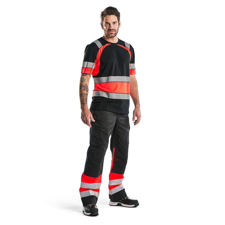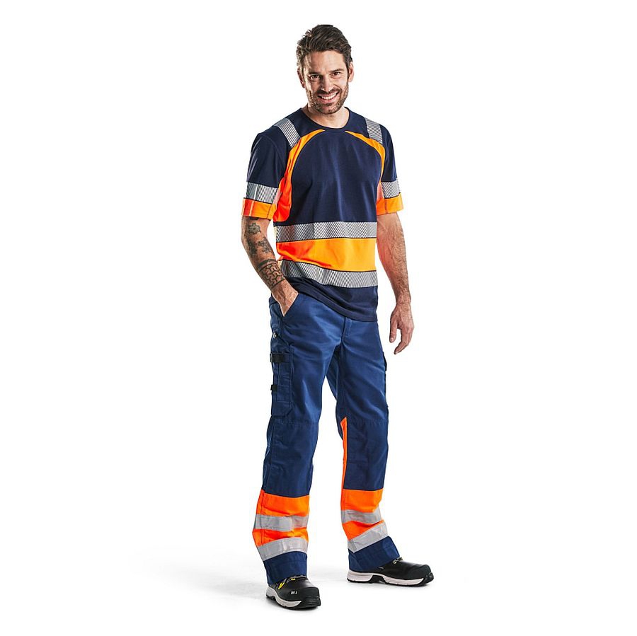 Leichte Warnschutz Arbeitshose mit ergonomischer Passform und guter Scheuerbeständigkeit. Die 1564 Blakläder HIGH-VIS Arbeitshose aus der dünnen LIGHTWEIGHT Kollektion eignet sich perfekt für heiße und schweißtreibende Arbeitstage, egal ob Drinnen oder Draußen. Ausgestattet mit jeder Menge ergonomisch angeordenter Taschen und dem schützenden Kniepolstersystem bietet diese Arbeitshose alles was Sie für effektives Arbeiten benötigen.