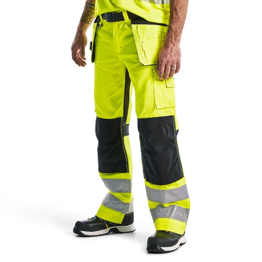 Warnschutz Bundhose mit Ventialtionseffekt in leichter Qualität mit wasser-und schmutzabweisender Oberfläche. Die 1565 Arbeitshose von Blakläder Workwear wurde entwickelt mit Mesh-Einsätzen an ausgesuchten Stellen wie z.Bsp. im Schritt, in den Kniekehlen und am Rücken. Die Knietaschen sind mit Cordura® verstärkt, um zusätzlichem Verschleiß entgegen zu wirken. Die Nageltaschen sind extra breit, abgeschrägt und haben extra viele Fächer. Die Bundhose ist nach EN20471 Klasse 2 zertifiziert.