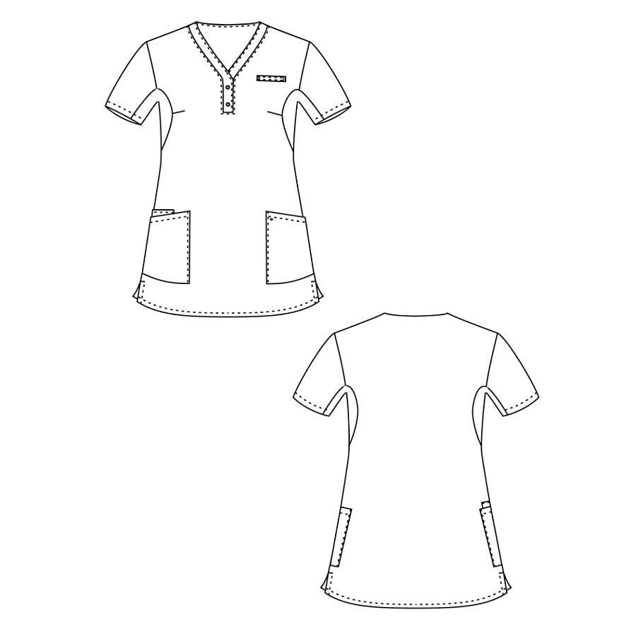 - V-Ausschnitt mit schmaler Druckknopfleiste.