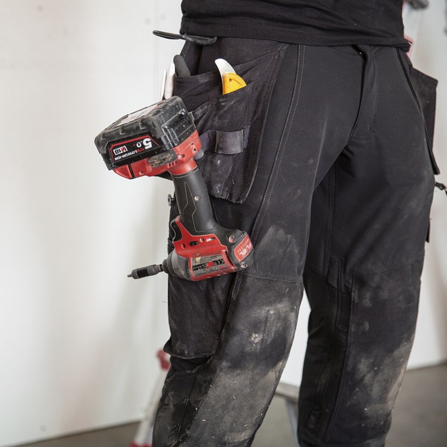 - Die Knietaschen aus strapazierfähigem CORDURA®-Gewebe sind regulierbar, so dass der Knieschutz immer optimal platziert ist.