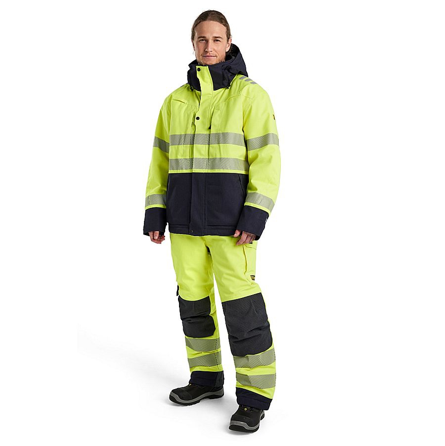 Die metallfreie, schwer entflammbare Latzhose 1817-1534 in High Vis Klasse 2 ist ein echter Schutz vor Kälte, Wind und Regen im Winter. Für zusätzliche Festigkeit und Schutz ist die Latzhose an den äußeren Kniepolstertaschen und im Rückenbereich verstärkt. Verstellbare Weite, segmentierte Transferreflexstreifen für bessere Sichtbarkeit und dunkler Stoff an schmutzanfälligen Stellen. Die Hosenträger sind verstellbar und abnehmbar. Die Latzhose hat Gürtelschlaufen an der Taille und einen Reißverschluss bis zum Knie sowie eine Beintasche, eine Zollstocktasche und handwärmende Taschen. Diese Latzhose macht alles mit! Zertifiziert nach IEC 61482-2: APC 2, ELIM 33 cal/cm² und ATPV 39 cal/cm². EN 1149, EN ISO 11612, EN ISO 11611, EN 13034, EN ISO 20471 und EN 14404. EN 343 4/1 - Bewertung der Wassersäule: 12.000 mm. EN 342 zusammen mit Modell 4517, 4917, 4527 - CLO-Wert 2,19, Icler 0,334 m² K/W.