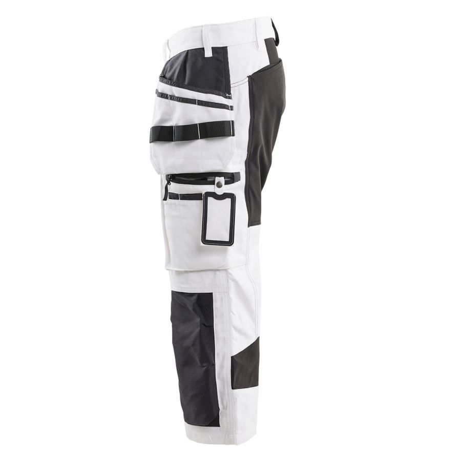 Die Blåkläder Maler Piratenhose mit Stretch (Art. Nr. 19121310) vereint komfortable Passform, funktionale Details und höchste Bewegungsfreiheit – ideal für Maler, Handwerker und Profis im Innenausbau. Dank gezielt platzierter Stretcheinsätze im Schritt, an Knien, Hüfte und Gesäß bietet diese Hose maximale Flexibilität, auch bei dynamischen Arbeitsbewegungen und längeren Einsätzen. Der hohe Baumwollanteil sorgt für eine hervorragende Saugfähigkeit des Materials und ein angenehmes Tragegefühl den ganzen Arbeitstag über. Die robuste Verarbeitung mit CORDURA®‑Verstärkungen in Werkzeug‑ und Kniebereichen macht die Hose besonders langlebig – ideal für professionelle Anforderungen auf der Baustelle oder im Servicebereich. Zahlreiche funktionelle Taschen inklusive spezieller Werkzeug‑ und Spachteltaschen sowie eine praktische Handy‑Innentasche sorgen dafür, dass alles Wichtige immer griffbereit ist. Ob bei Malerarbeiten, Renovierungen oder leichten Handwerksaufgaben: Die Blåkläder Maler Piratenhose mit Stretch kombiniert komfortables Tragen, funktionale Ausstattung und hochwertige Materialien – für effizientes und angenehmes Arbeiten.