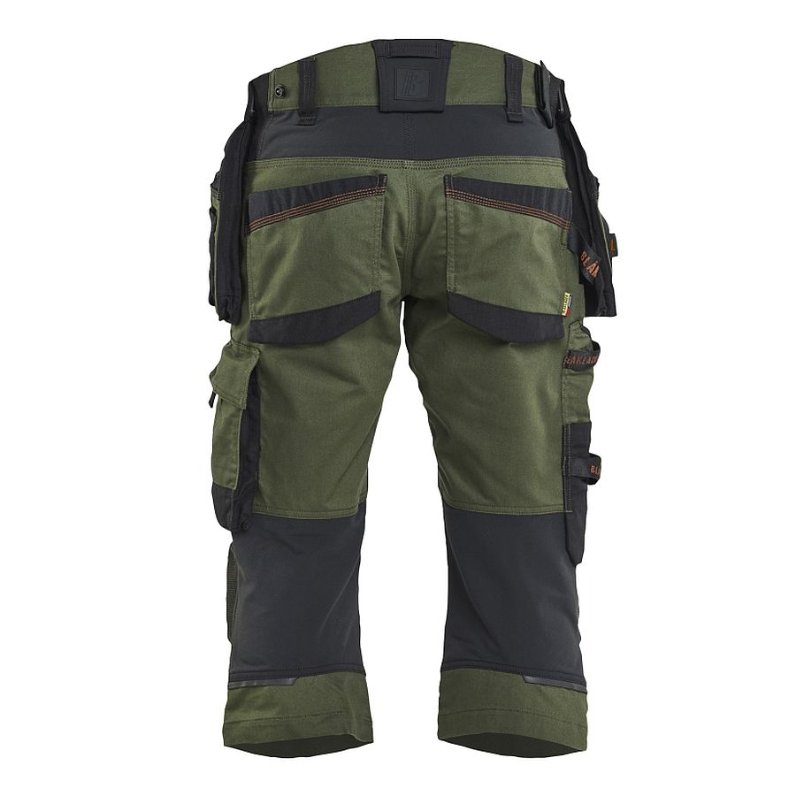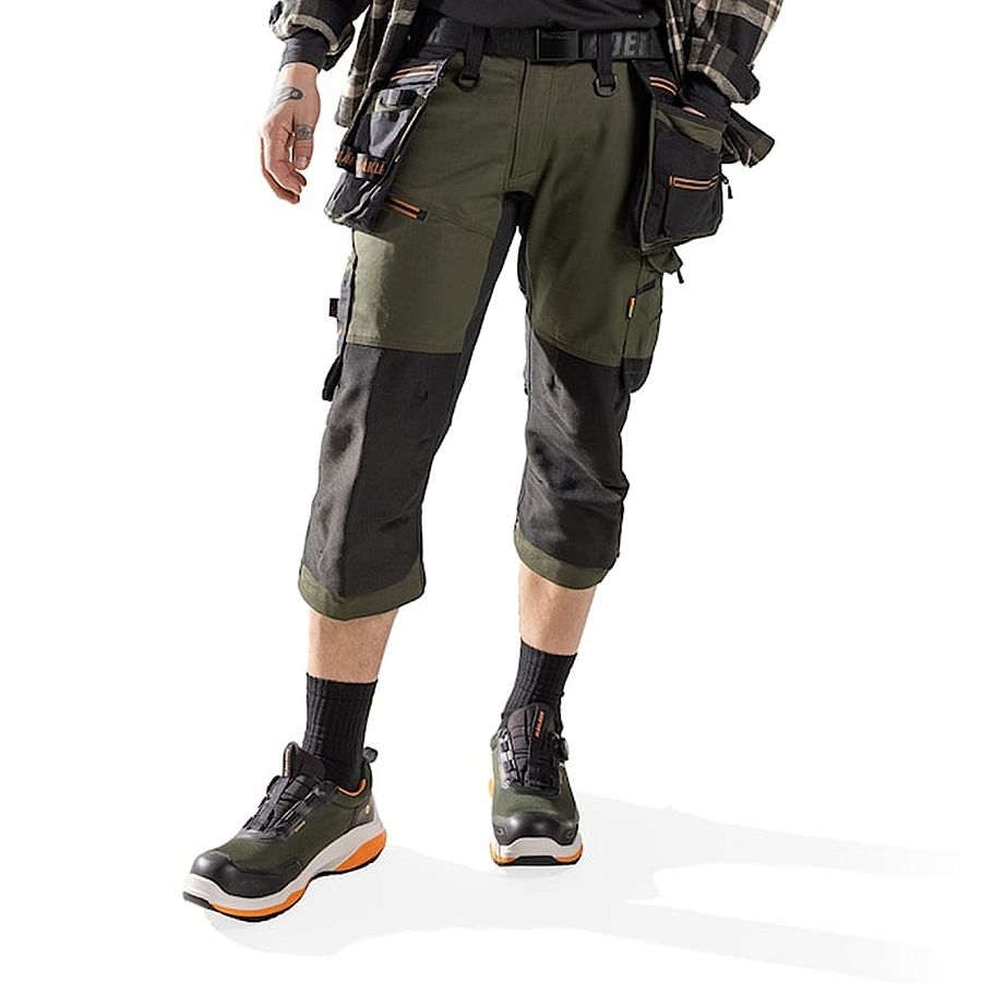 Die Blåkläder STRIKER Piratenshorts 1977-1149 mit Stretch bieten hohe Strapazierfähigkeit und optimalen Komfort dank ihres 2-Wege-Stretch-Materials und CORDURA®-Denim. Die Shorts sind besonders für Handwerker geeignet, da sie ergonomisch geformte Beine, Kniepolstertaschen und abnehmbare Nageltaschen haben. Weitere Highlights sind der erhöhte Bund, Belüftungseinsätze und verstärkte Taschen. Mit reflektierenden Details und einer Zertifizierung nach EN 14404 sorgen sie für Sicherheit und Bequemlichkeit bei der Arbeit.