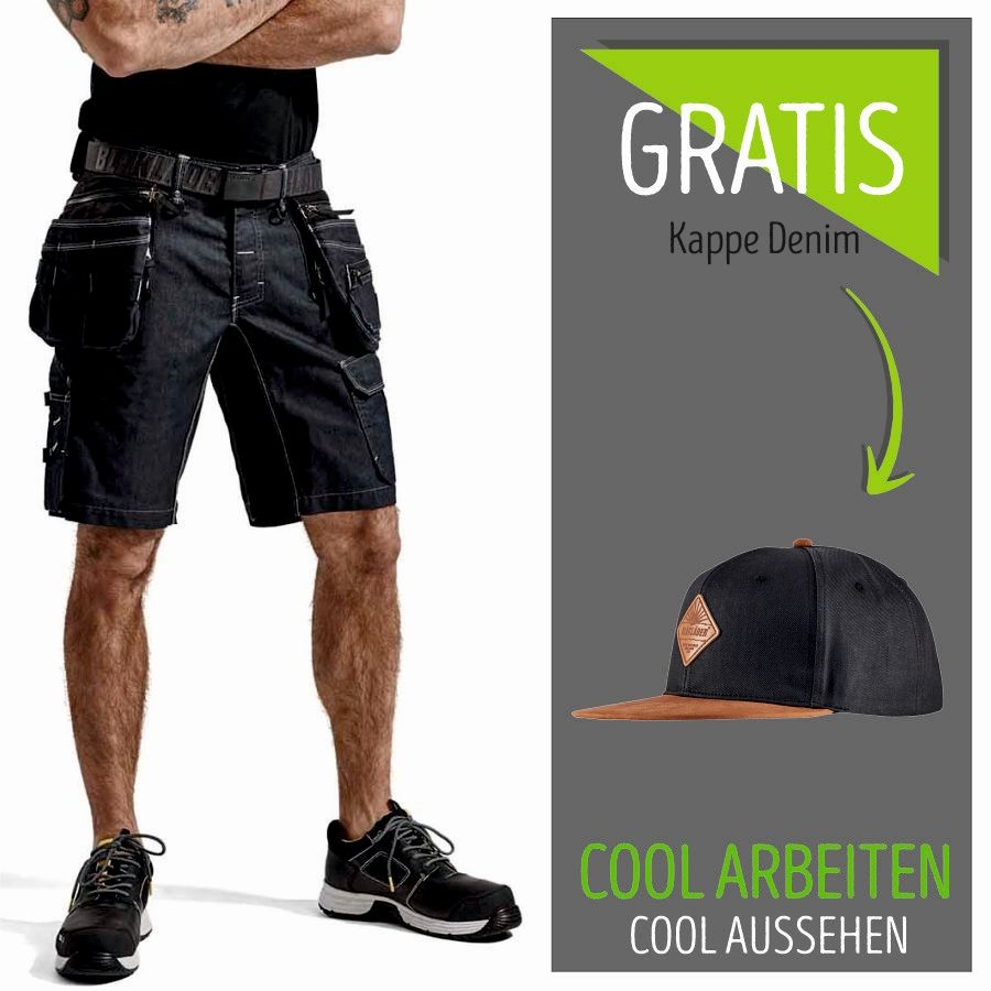 Funktionelle Handwerker Shorts in Cordura® Denim Stretch mit Stretch Einsätzen im Schritt für optimale Bewegungsfreiheit und Komfort. Inkl. gratis Blakläder Cap 2072