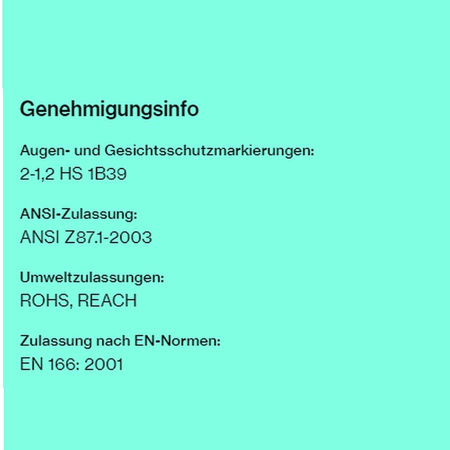 - Zulassung nach EN-Normen: EN 166 1B39 CE.