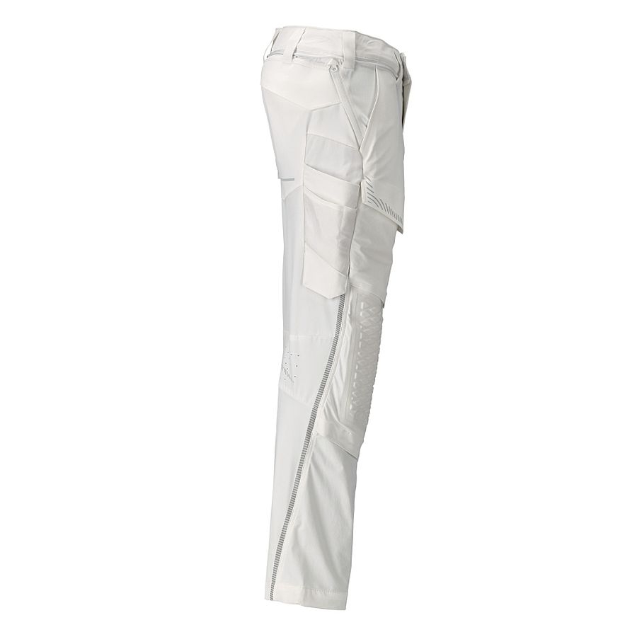 - Seitlich am Oberschenkel offene Tasche mit kleiner Außentasche, die Platz für einen Malerpinsel bietet.
