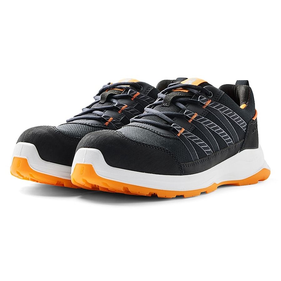 Der SPRINTER Sicherheitsschuh 2402-0000 von Blåkläder vereint Leichtigkeit und Funktionalität in einem modernen Sneaker-Design. Das atmungsaktive Textilobermaterial ist an Zehen und Ferse verstärkt, um zusätzliche Stabilität und Langlebigkeit zu gewährleisten. Eine Komposit-Zehenschutzkappe bietet effektiven Schutz, während der flexible, nichtmetallische Nageldurchtrittschutz aus Textil den Anforderungen der EN ISO 20345:2022 S1PS FO SR SC entspricht. Die PU-Zwischensohle sorgt für eine ausgewogene Stoßdämpfung, und die rutschfeste TPU-Laufsohle gewährleistet sicheren Halt auf verschiedenen Untergründen. Die anatomisch geformte Einlegesohle aus weichem PU-Material mit textiler Oberfläche bietet hohen Tragekomfort und optimale Feuchtigkeitsaufnahme. Dieser metallfreie Sicherheitsschuh ist ESD-geprüft und ideal für Tätigkeiten in Lager, Service, Logistik und Industrie.
