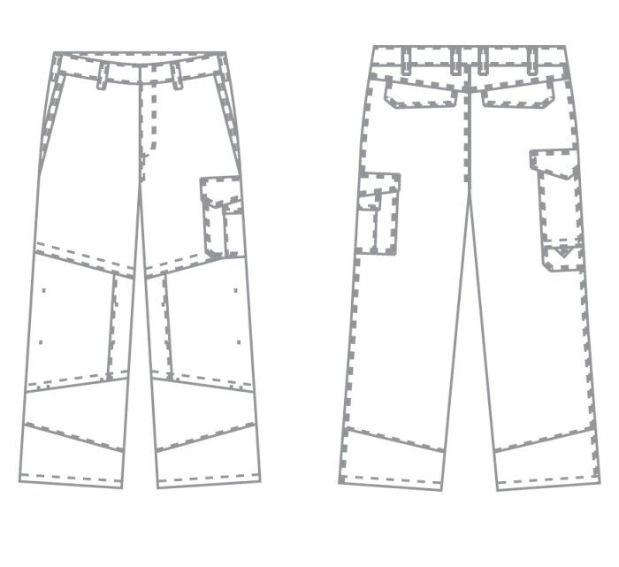 Arbeitshosen: Robuste Materialien mit durchdachten Details wie verstärkten Knien, praktischen Taschen und elastischen Einsätzen.