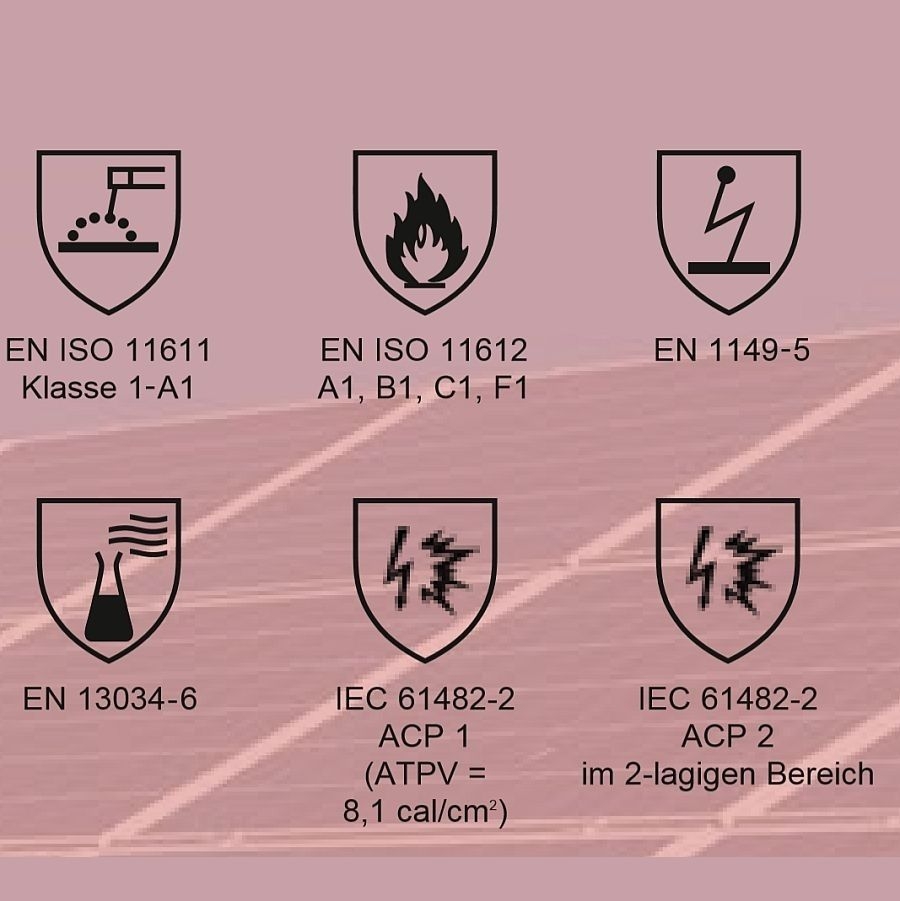 - EN ISO 11612 Hitze- und Flammschutz A1 B1 C1 F1