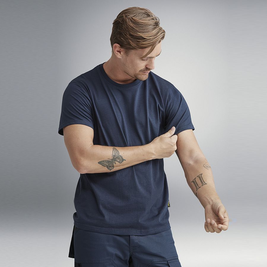 AllroundWork T-Shirt aus 100% nachhaltiger Bio-Baumwolle. Das Single-Jersey-Baumwollgewebe ist leicht, bequem und für den täglichen Gebrauch geeignet. Das klassische Design und die bequeme Passform machen aus dem 2526 Shirt einen treuen Begleiter bei der täglichen Arbeit. Das eingedruckte Label im Nacken, sorgt für einen kratzfreien Tragekomfort. Das Snickers Workwear T-Shirt 2526 wird aus nachhaltiger Bio-Baumwolle hergestellt und bietet besten Tragekomfort und ist sehr pflegeleicht.