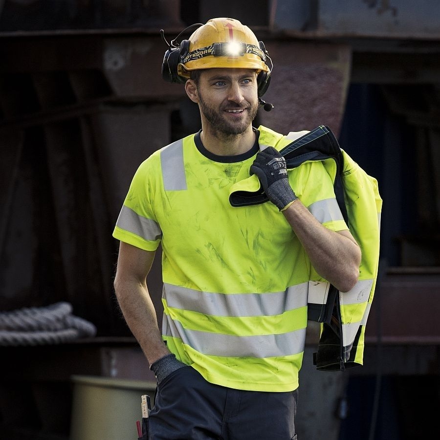 Gut sichtbares Snickers AllroundWork T-Shirt aus high-tech Polyester, leicht und atmungsaktiv. Gibt kühlen Komfort an warmen Sommertagen. Aus weichem und bequemem Polyester-Piqué. Hoher Tragekomfort durch die effiziente Belüftung aufgrund der Materialstruktur. Fühlt sich luftig und gut belüftet anl. Das reflektierende Band ist für erhöhten Komfort heißversiegelt. EN 20471