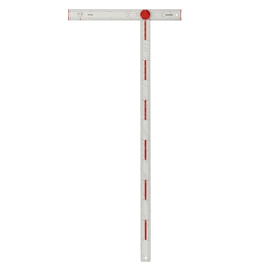 Verstellbarer Maurerwinkel mit Millimeter und Grad Einteilung, welcher in vier Positionen einrastet. Der Schenkel und die Klinge können zusammengefaltet werden, dies macht den Transport einfacher und der Winkel ist für Arbeiten in der linken oder rechten Position geeignet.