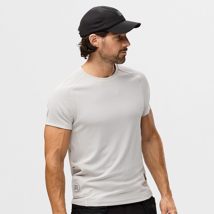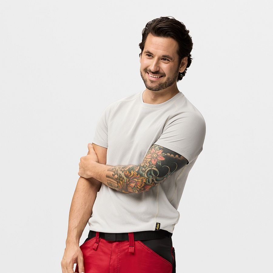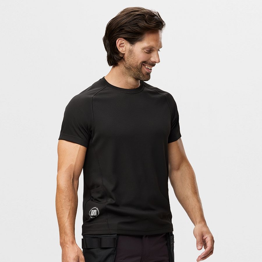 Das Snickers Workwear T-Shirt Stay Fresh 2556 von der Hultafors Group ist ein funktionelles Kleidungsstück, das hohen Tragekomfort mit innovativen Materialien kombiniert. Es eignet sich ideal für den ganzjährigen Einsatz und passt sich dank der mit Bambuskohle angereicherten Fasern an die Körpertemperatur an. Dieses leichte und vielseitige T-Shirt wurde speziell für wärmere Bedingungen und Tätigkeiten mit hoher Aktivität entwickelt. Es dient auch hervorragend als unterste Schicht in Kombination mit Thermo-Baselayern. Das Material besteht aus 51 % spinngefärbtem recyceltem Polyester und 49 % Polyester mit Bambuskohle, was antibakterielle, geruchshemmende, anti-pilling und schnelltrocknende Eigenschaften verleiht. Zudem sorgt die natürliche Temperaturregulierung des Materials dafür, dass Sie angenehm kühl bleiben, wenn es heiß ist. Das T-Shirt verfügt über Raglanärmel und eine Tasche auf der rechten Seite. Der eingefasste Ausschnitt sorgt für Strapazierfähigkeit und Komfort. Flatlocknähte bieten ein glattes Finish, und die seitennahen Nähte erhöhen den Tragekomfort. Für eine lange Lebensdauer des T-Shirts wird empfohlen, die Pflegehinweise des Herstellers zu beachten. Dank der schnelltrocknenden Eigenschaften ist es zudem besonders pflegeleicht.