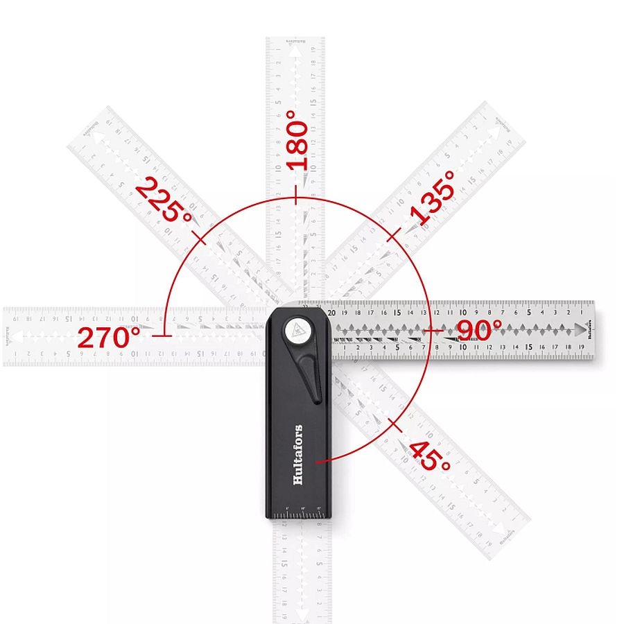 - Kann als feststellbare Winkelschmiege verwendet werden.