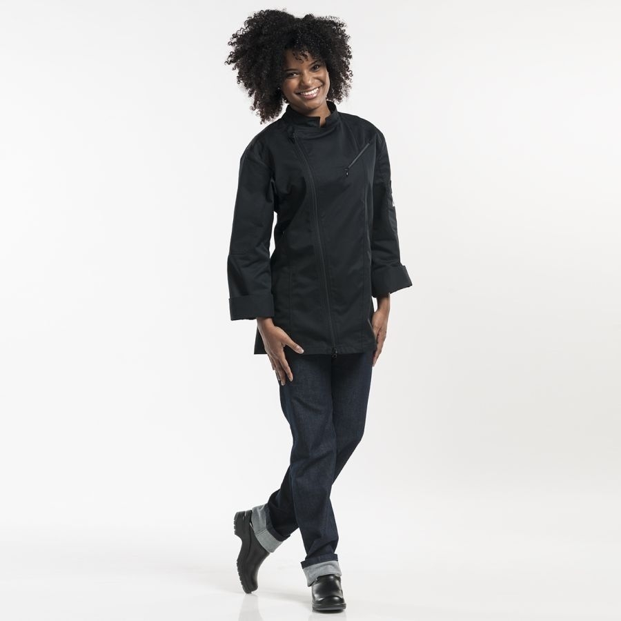 Die Doppelnähte und schräg eingesetzten Reißverschlüsse verleihen dieser Kochjacke Biker 288 von Chaud Devant das legere Aussehen, das man von einer Biker-Jacke eben erwarten darf. Die angepasste spezielle Reißverschlusskonstruktion (verkehrt herum) ergibt einen verbesserten Verschleißschutz, praktisch und funktionell, wie eine richtige Motorradjacke.