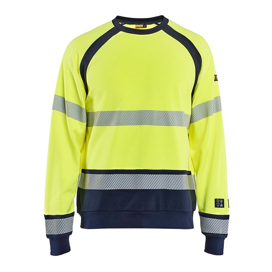 Das Multinorm Sweatshirt 3088 1762 von Blakläder bietet umfassenden Schutz vor verschiedenen Gefahrenquellen wie Hitze, Flammen, elektrischen Lichtbögen und elektrostatischer Aufladung. Hergestellt aus einem inhärent flammhemmenden Gewebe mit einem Anteil von 60 % Modacryl, 39 % Baumwolle und 1 % antistatischer Faser, gewährleistet es dauerhaften Schutz, der nicht durch Waschen verloren geht. Die gebürstete Innenseite sorgt für ein angenehmes Tragegefühl, selbst bei langen Arbeitseinsätzen. Dank der segmentierten, flammhemmenden Transferreflektoren bietet das Sweatshirt nicht nur hervorragende Sichtbarkeit gemäß EN ISO 20471, sondern auch optimale Bewegungsfreiheit und Atmungsaktivität. Die dunklen Farbbereiche an schmutzanfälligen Stellen tragen dazu bei, das gepflegte Erscheinungsbild des Kleidungsstücks auch bei intensiver Nutzung zu erhalten.