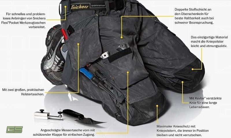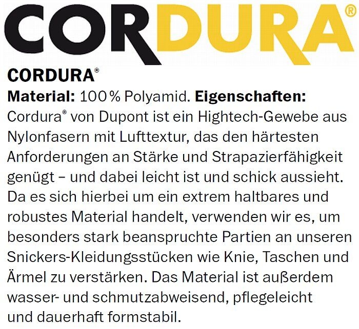 | Produkteigenschaften: | Corduraverstärkung, Holstertaschen, Knieschutz |
