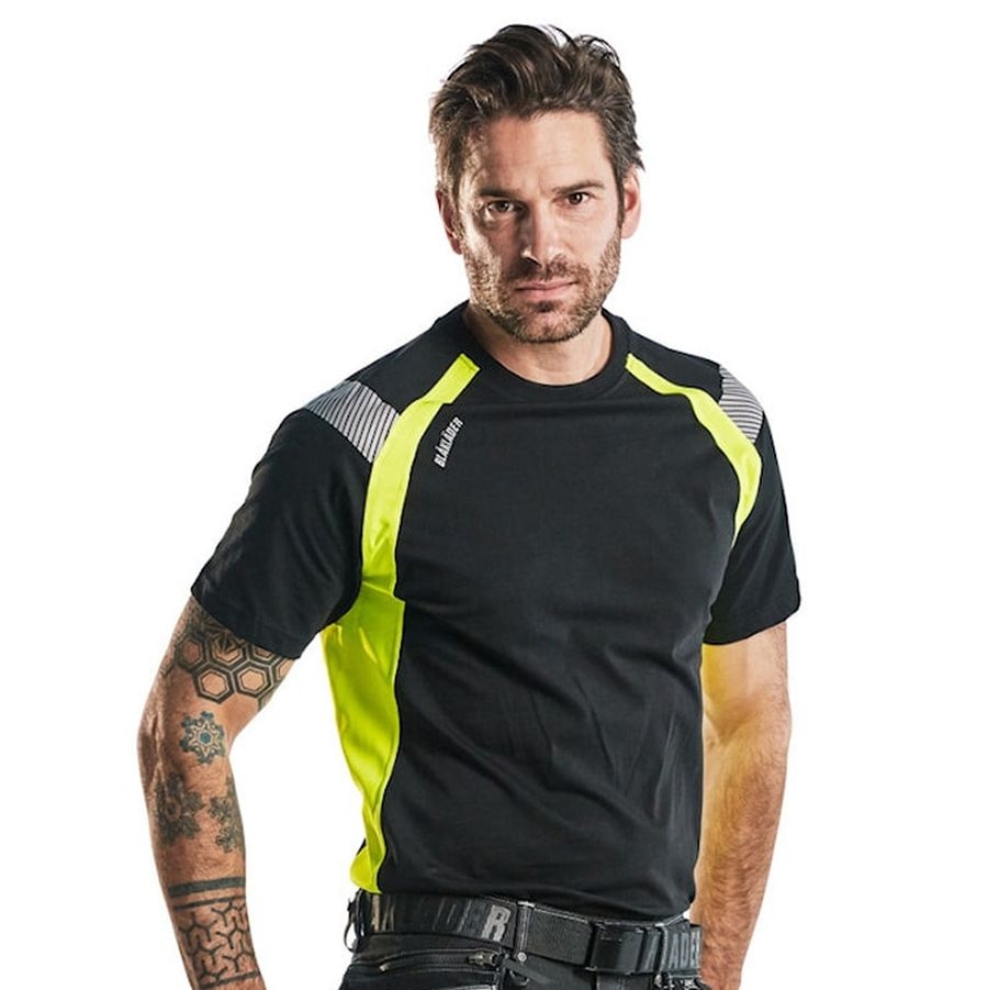 Das High Vis T-Shirt 3332 von Blakläder mit hohem Baumwollanteil für maximalen Komfort. Das Shirt hat High Vis Einsätze für eine höhere Sichtbarkeit.