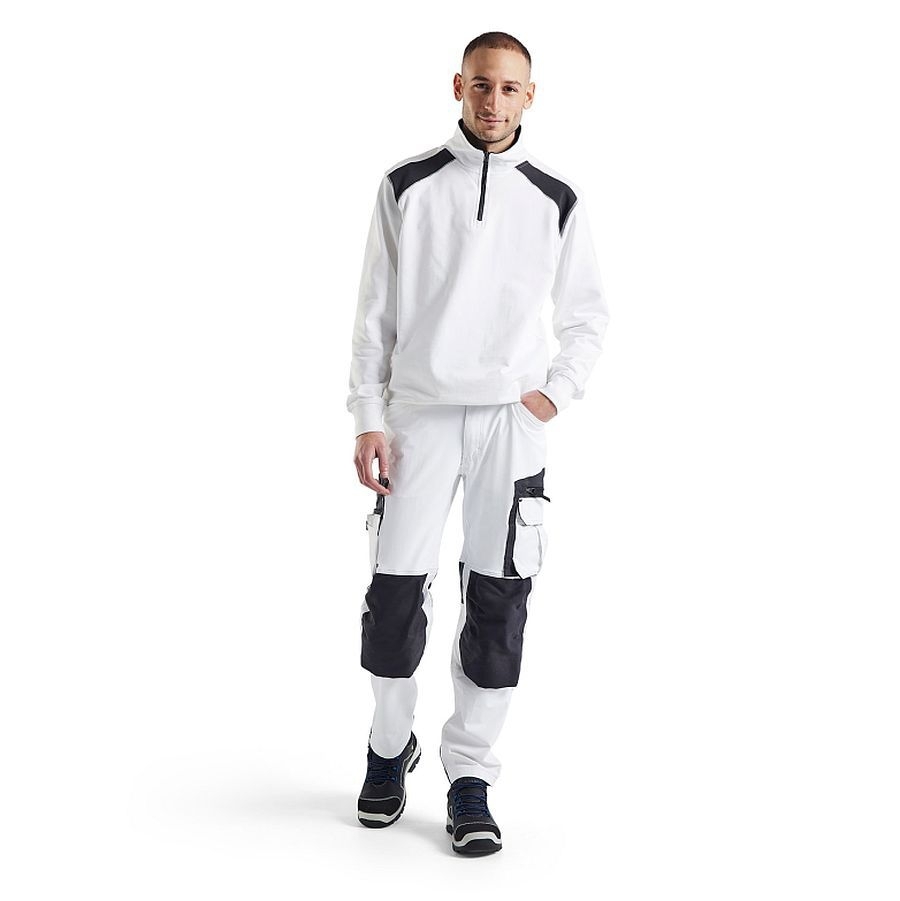 Klassiches zweifarbiges Sweatshirt von Blakläder aus hautfreundlichem und komfortablem Baumwollgewebe. Das 3353 Sweatshirt mit Halb-Zip ist mit verstärkten Nähten, geripptem Ärmel- und Bundabschluß und kurzem Stehkragen ausgestattet.