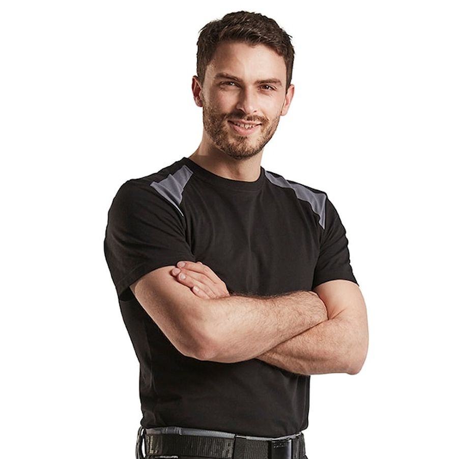 Vervollständigen Sie Ihre Garderobe mit dem zweifarbigen T-Shirt 3379 von Blakläder Workwear. Verstärkte Hals- und Schulternähte und Passe über den Schultern. Passt perfekt zu der Industriekollektion von Blakläder.
