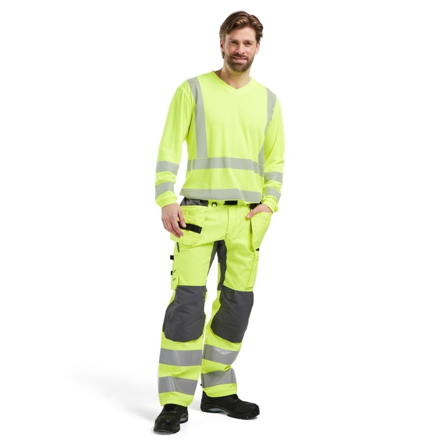 Das High Vis Langarm T-Shirt 3385 aus feuchtigkeitstransportierenden Polyester. Die unterbrochenen Reflexstreifen mit Stretch sorgen für optimale Bewegungsfreiheit und LSF 40+. Zusätzlich ist das Langarmshirt Anti-Geruch behandelt und nach EN ISO 20471 Klasse 3 zertifiziert.