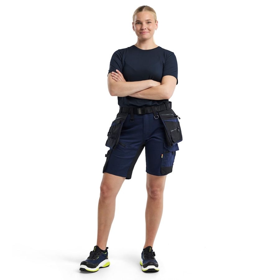 Das Blakläder Damen Funktions T-Shirt mit UV-Schutz (34261126) überzeugt durch sein leichtes und elastisches Jacquard-Gewebe, das zu 91 % aus Polyester und zu 9 % aus Elasthan besteht. Mit einem Gewicht von nur 135 g/m² ist es besonders angenehm zu tragen und eignet sich hervorragend für den Einsatz bei hohen Temperaturen. Die spezielle Struktur des Materials sorgt für eine effektive Belüftung und unterstützt den Feuchtigkeitstransport, sodass die Haut auch bei intensiver körperlicher Aktivität trocken bleibt. Ein herausragendes Merkmal dieses T-Shirts ist der integrierte UV-Schutz mit einem UPF-Wert von 40+, der gemäß der Norm EN 13758-2 zertifiziert ist. Dies bietet einen zuverlässigen Schutz vor schädlicher UV-Strahlung, was besonders bei Arbeiten im Freien von großer Bedeutung ist. Zusätzlich tragen reflektierende Details an den Schultern zur erhöhten Sichtbarkeit und damit zur Sicherheit bei. Das T-Shirt verfügt über einen klassischen Rundhalsausschnitt und einen dezenten Aufdruck auf den Ärmeln, was ihm ein modernes und zugleich professionelles Erscheinungsbild verleiht.