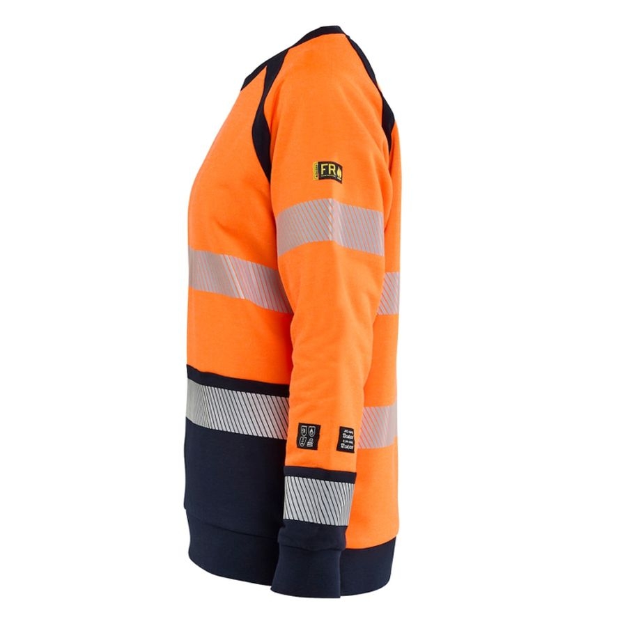 Das Blåkläder Damen Multinorm Sweatshirt Inhärent ist die ideale Wahl für alle, die im Arbeitsalltag zuverlässigen Schutz, hohe Sichtbarkeit und angenehmen Tragekomfort in einem Kleidungsstück vereinen möchten. Das Blåkläder Sweatshirt 34541745 wurde speziell für anspruchsvolle Einsätze entwickelt, bei denen Schutz vor Hitze und Flammen, Störlichtbögen sowie statischer Elektrizität entscheidend ist – und das in einer bequemen Sweatshirt-Qualität mit sportlichem Rundhals-Look. Ein großer Vorteil dieses Modells: Es ist inhärent flammhemmend. Das bedeutet, die Schutzwirkung ist dauerhaft in der Faser verankert und nicht nur eine nachträgliche Ausrüstung. Zusammen mit dem antistatischen Material eignet sich das Blåkläder Damen Multinorm Sweatshirt Inhärent hervorragend für Industrie, Energie/Versorgung, Instandhaltung und alle Bereiche, in denen Multi-Norm-Schutz gefordert wird. Für Sichtbarkeit im Arbeitsumfeld sorgen breite, segmentierte Reflexstreifen. Sie erhöhen die Wahrnehmbarkeit, ohne die Beweglichkeit einzuschränken – perfekt, wenn du viel in Aktion bist. Zusätzlich hat Blåkläder bei diesem Damenmodell bewusst dunkle Farbfelder in schmutzanfälligen Bereichen eingesetzt, damit das Sweatshirt länger ordentlich und professionell aussieht. Die weiche, gebürstete Innenseite fühlt sich angenehm auf der Haut an und macht das Sweatshirt zum idealen Begleiter – auch bei längeren Schichten. Details wie gerippter Bund, Bündchen an den Ärmeln und der gerippte Rundhalsausschnitt sorgen für stabilen Sitz.