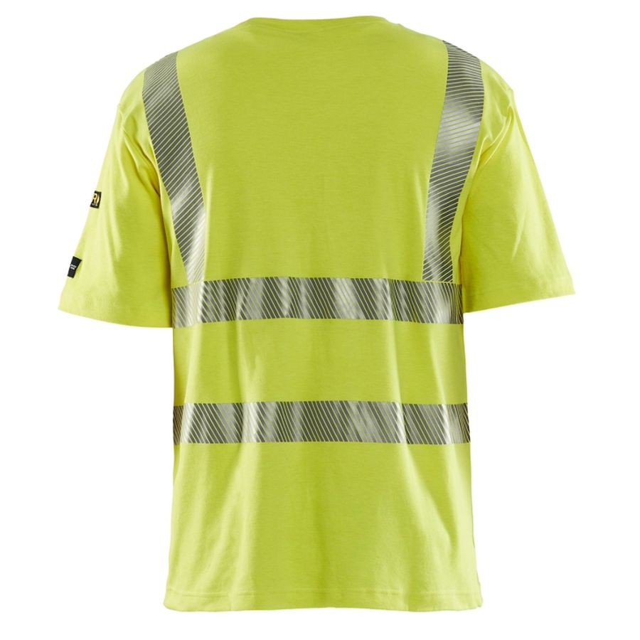 Mit dem Blåkläder Multinorm T-Shirt 34801737 bekommst du ein professionelles Schutzshirt für Einsätze, in denen Warnschutz, Flammschutz und antistatische Eigenschaften gleichzeitig gefragt sind. Das Multinorm-Shirt ist bewusst aus einem dünneren, inhärenten Material gefertigt – dadurch trägt sich das Blakläder 34801737 Multinorm T-Shirt spürbar luftiger, bleibt aber konsequent auf Schutzleistung ausgelegt. Gerade im Arbeitsalltag macht der Komfort den Unterschied: Die segmentierten Transfer-Reflektoren sorgen für hohe Sichtbarkeit, ohne steif zu wirken – du profitierst von mehr Bewegungsfreiheit und einem angenehmeren Tragegefühl, auch wenn du das Shirt über viele Stunden trägst. Dazu kommen praktische Details wie der Rundhalsausschnitt sowie außenliegende Zertifizierungsetiketten, die Kontrollen und Dokumentation erleichtern. Das Blåkläder Multinorm T-Shirt 34801737 (3300) ist als Warnschutzshirt zertifiziert nach EN ISO 20471 Klasse 2 (Zertifizierungsgruppe A, max. 50 Waschgänge) und erfüllt zudem die Anforderungen an Antistatik (EN 1149-5) sowie Flammhemmung (EN ISO 14116, Index 3). Zusätzlich ist ein UV-Schutz integriert (EN 13758-2, UPF 40+) – ideal, wenn du viel im Freien arbeitest.