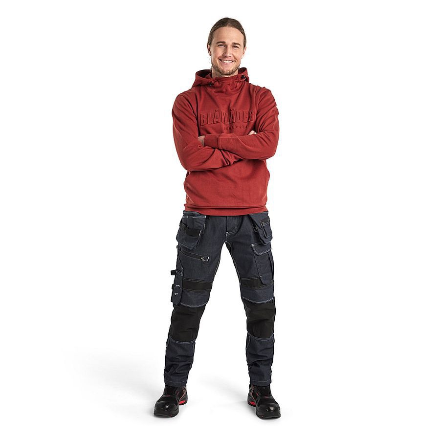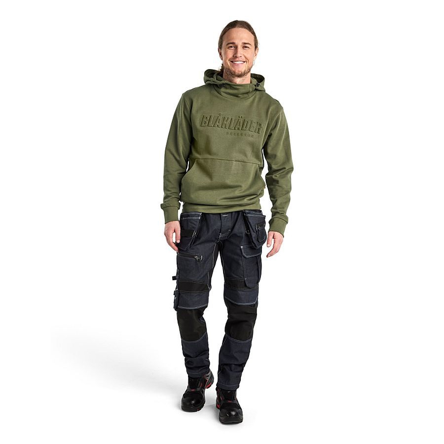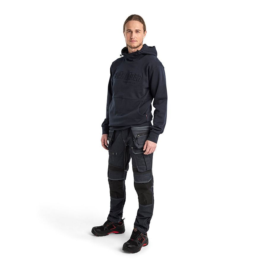 Stylischer, angenehm warmer Sweater aus weichem Jersey, ideal für die Arbeit und Freizeit. Ausgestattet mit einer Handytasche mit Reißverschluss und Öffnungen für Kopfhörer in der Tasche. Der Kapuzensweater ist mit einem sehr auffälligen 3D-Druck auf der Brust mit der Aufschrift "Blåkläder" verziert, der zeigt, dass Ihr Herz in Sachen Arbeitskleidung an der richtigen Stelle sitzt.