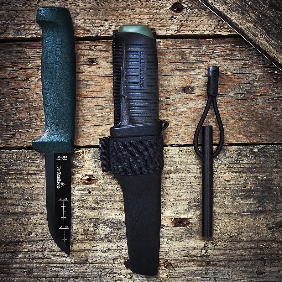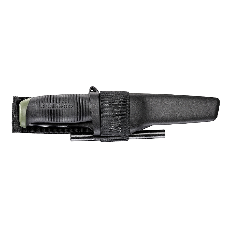 - Der elastische Gurt erleichtert die Befestigung des Hultafors Feuerstahlhalters.