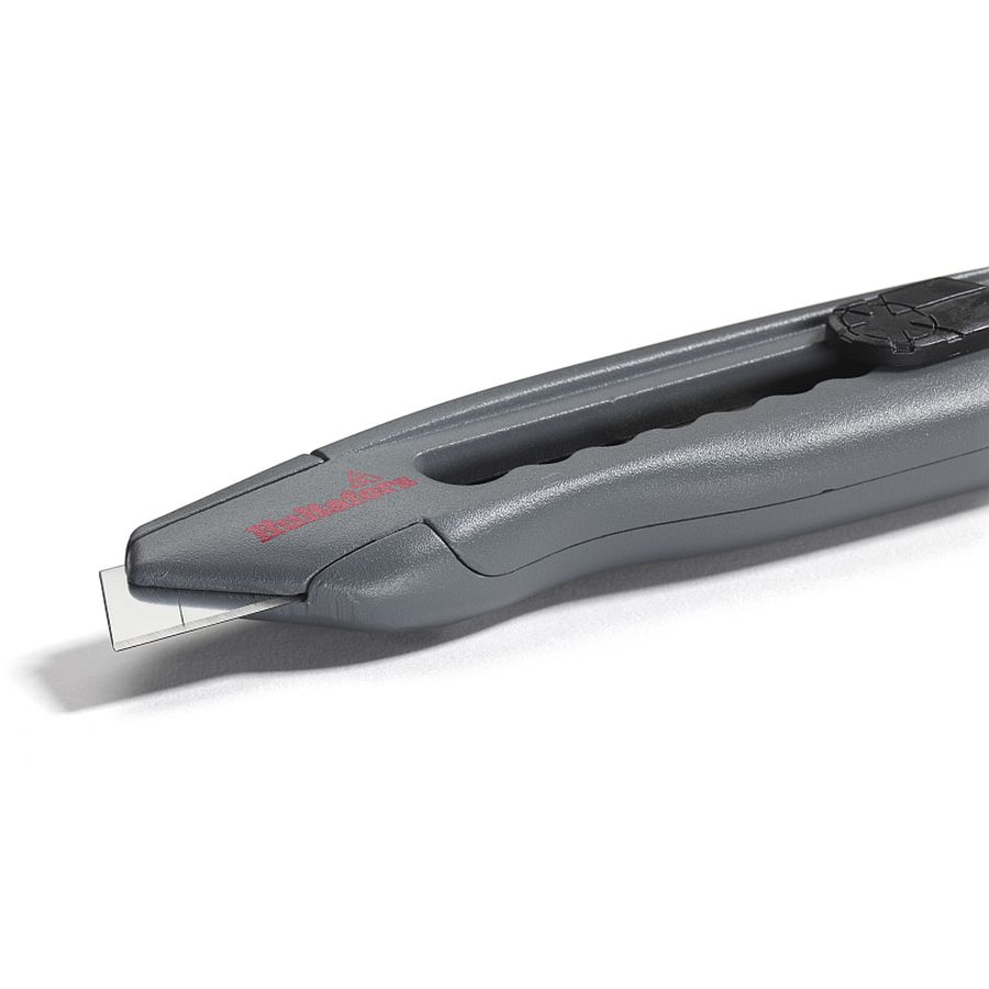 Robustes und zuverlässiges Abreißmesser, ergonomisch gestaltet für maximale Sicherheit und Komfort. Der intelligent gestaltete Knopf erleichtert das Herausführen und Verriegeln der Klinge mit einer Hand, während die Klinge sicher in Position gehalten werden kann. Lieferung mit 1 Klinge.
