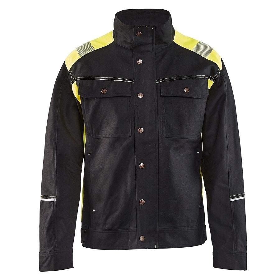 Klassische Sommerjacke mit intelligenten High-Vis Details und dirskreten Reflexstreifen für bessere Sichtbarkeit. Die 4095 1370 Jacke von Blakläder hat vorgeformte Ellbögen, Bewegungsfalten am Rücken und einstellbaren Bund und Armabschlüsse für optimalen Komfort bei der Arbeit.