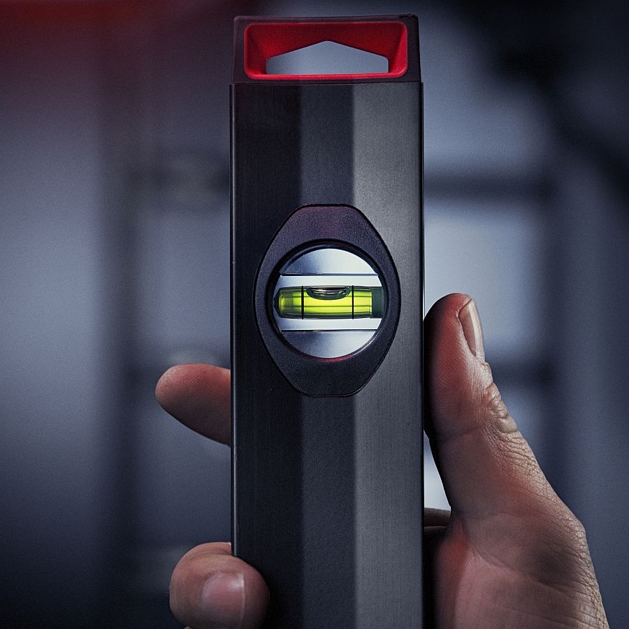 Solides, griffiges Aluminiumprofil mit den Abmessungen 51,5x25,3 mm und einem Gewicht von 630 g/m. Unzerbrechliche Blocklibellen mit sehr hoher Transparenz und Haltbarkeit. Waagerechtlibelle mit Vergrößerungslinse (+30 %) und Leuchtbelag. Stoßdämpfende Endkappen und temperatursichere Libelleneinfassungen.