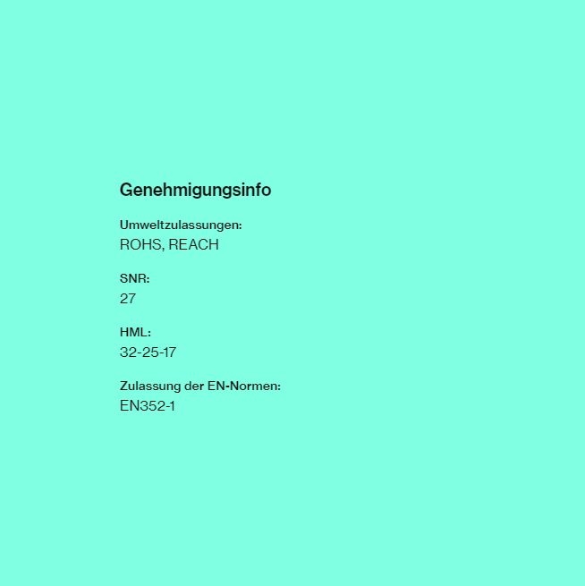 - Schutzstufe 1 für geringes bis mittleres Geräusch.